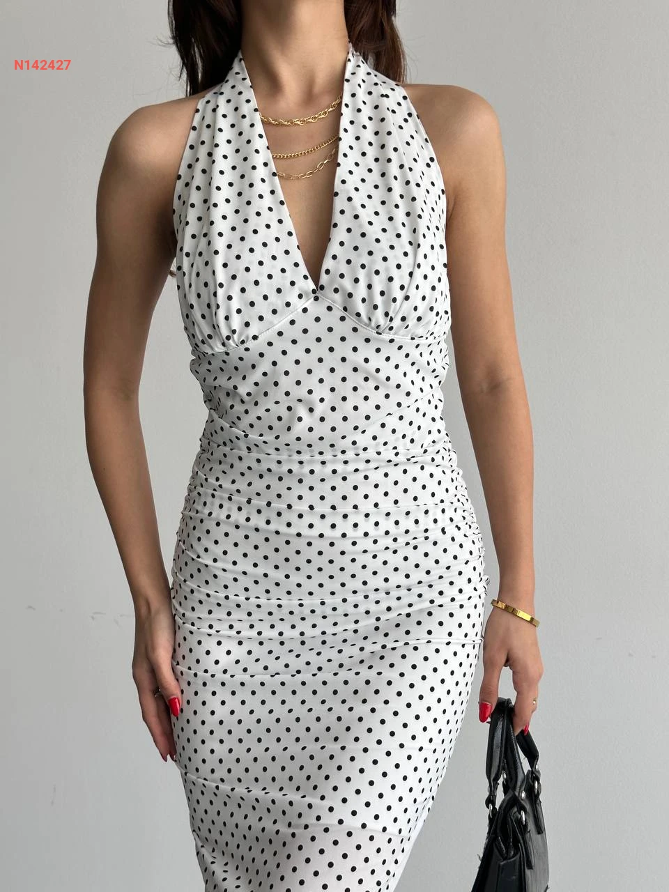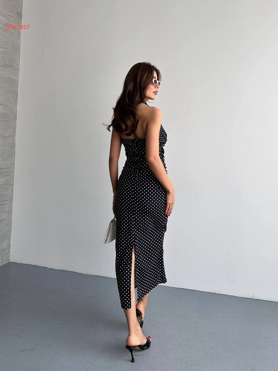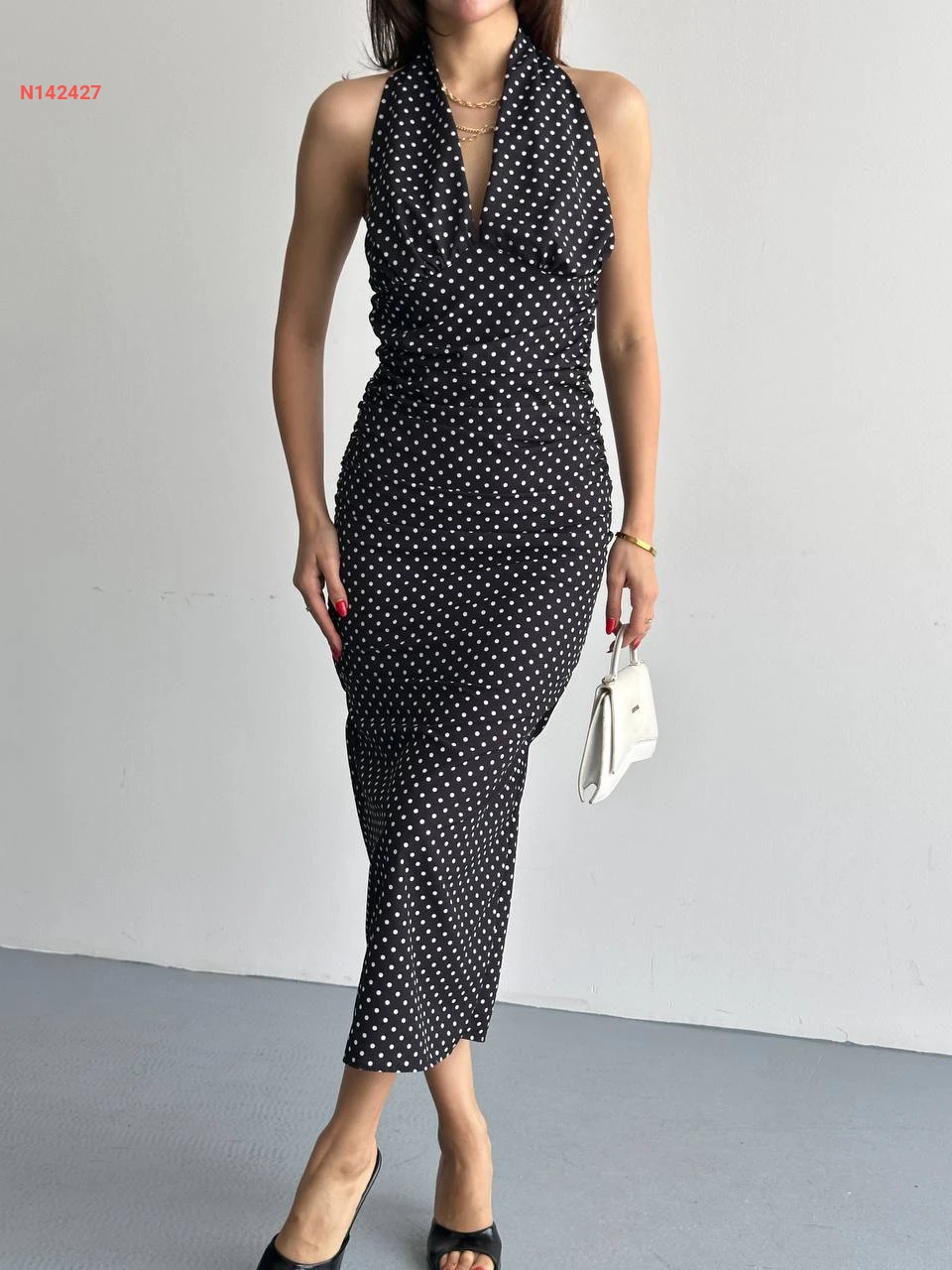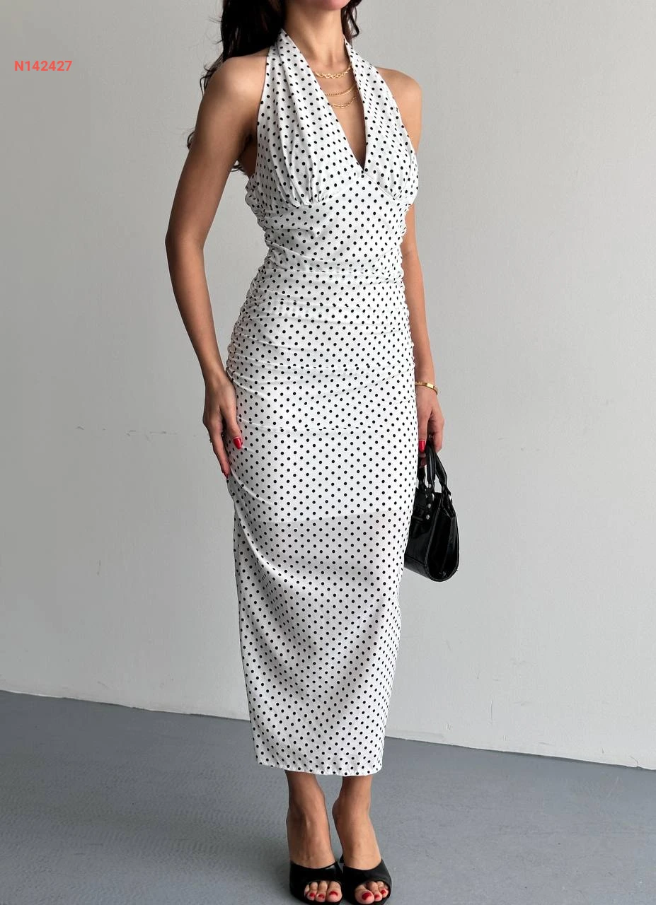 فستان طويل منقط