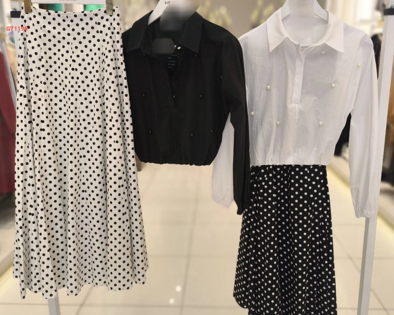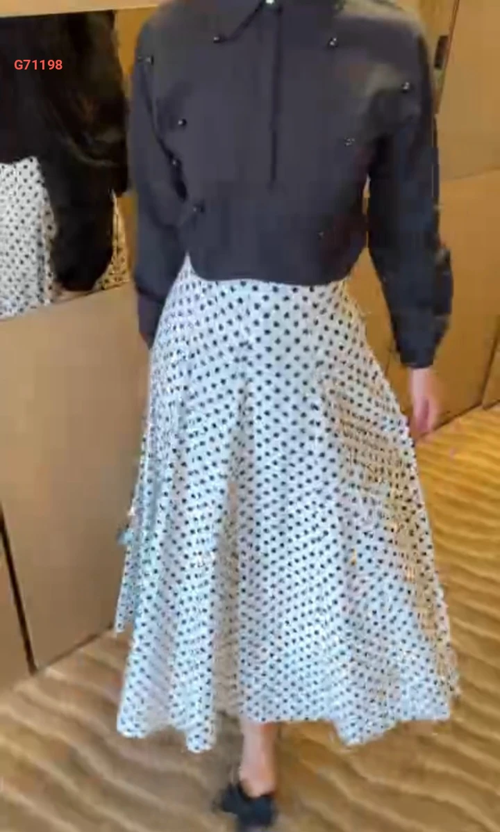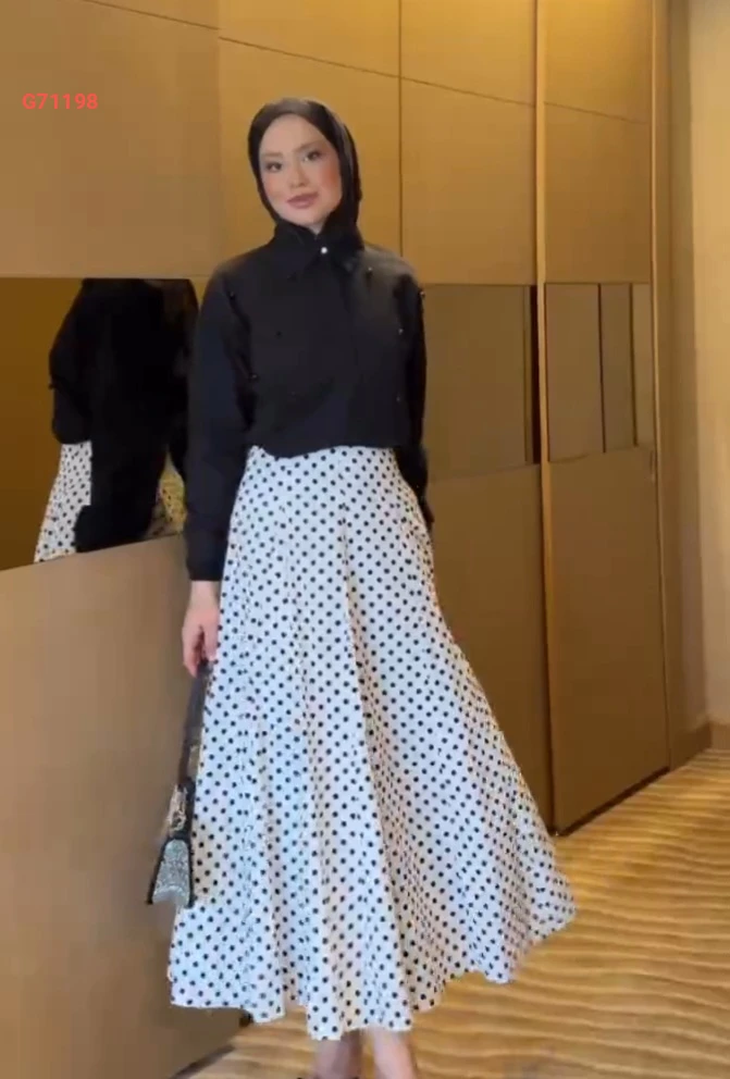 طقم تنورة طويلة منقطة وقميص مزين لولو