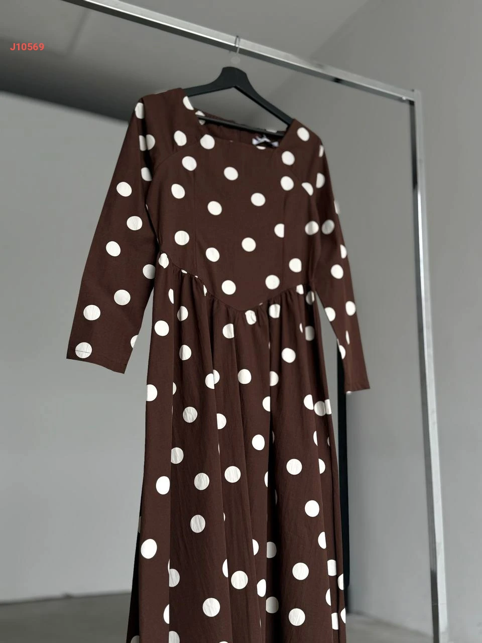 فستان ميدي منقط بأكمام طويلة