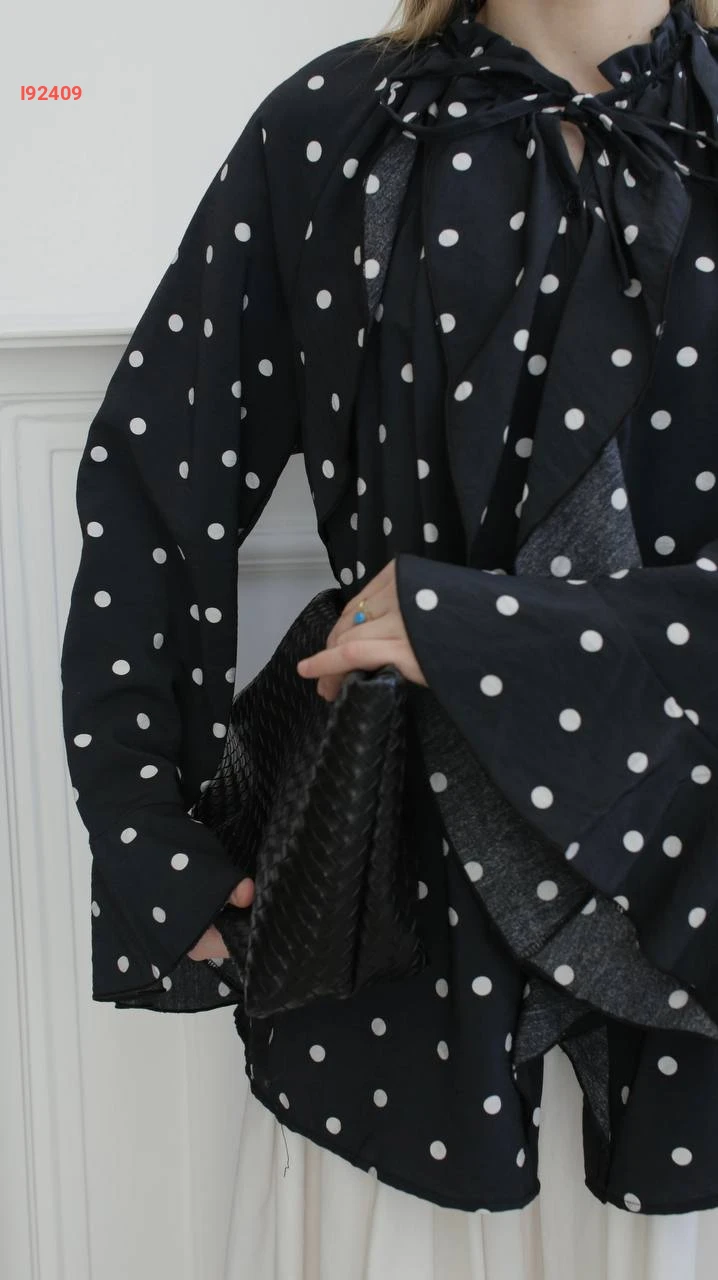 قميص منقط بتفاصيل كشكش