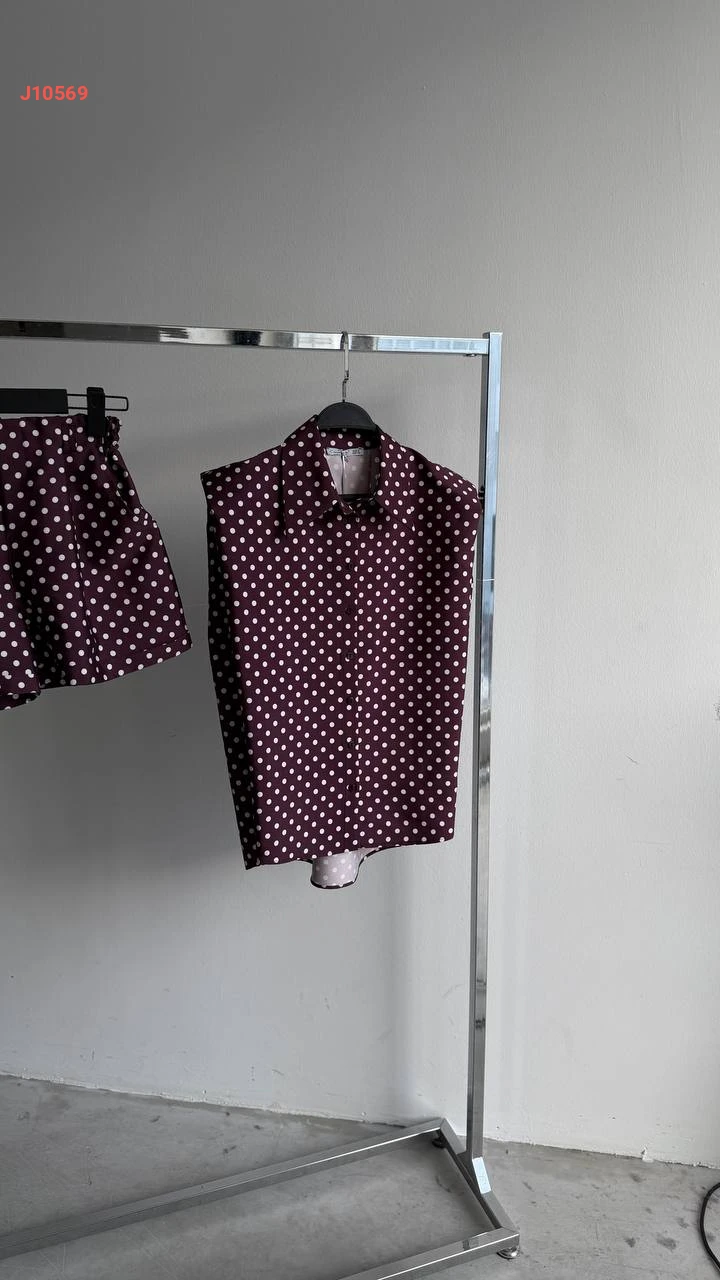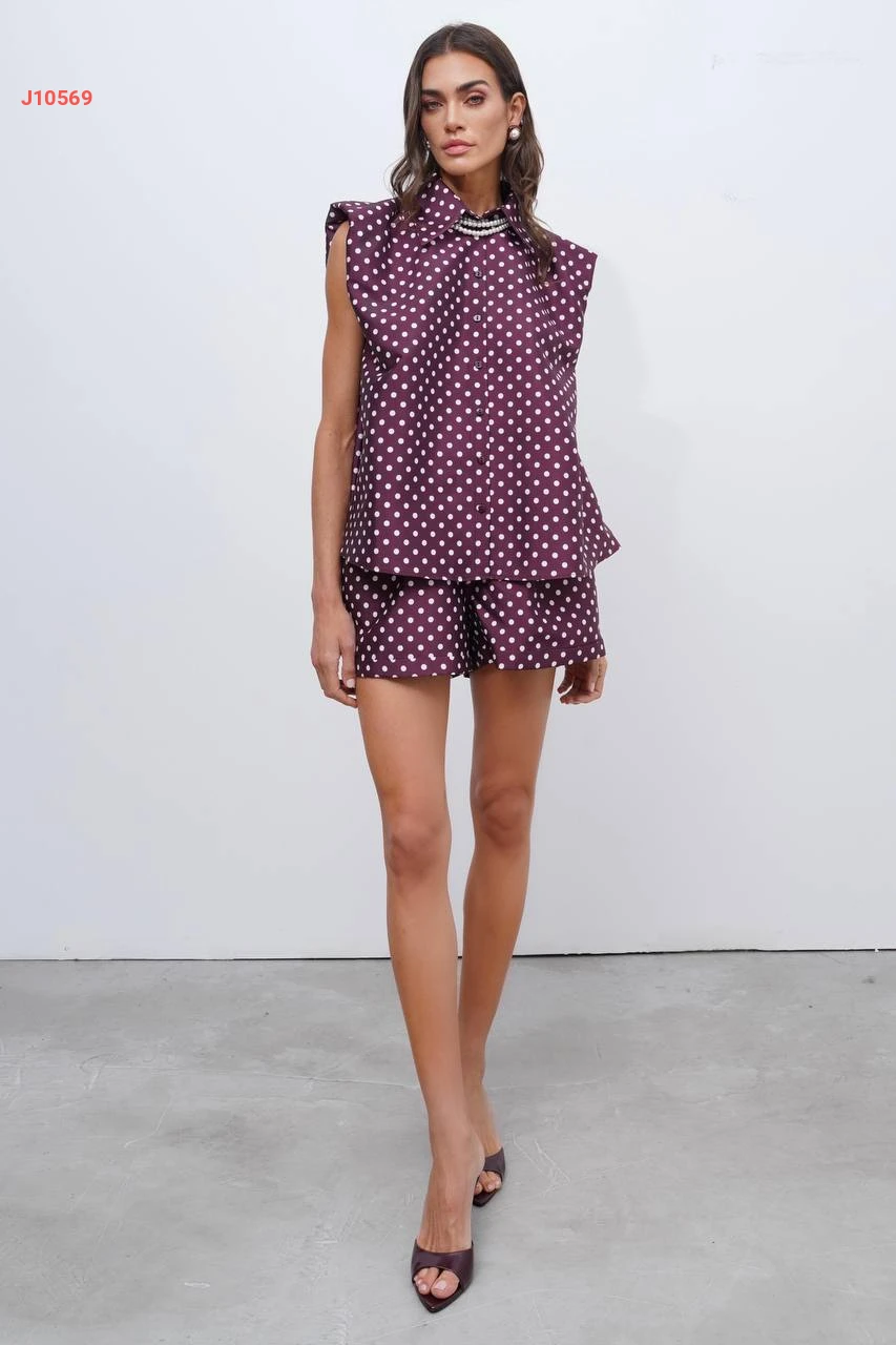 طقم شورت منقط مع قميص حفر