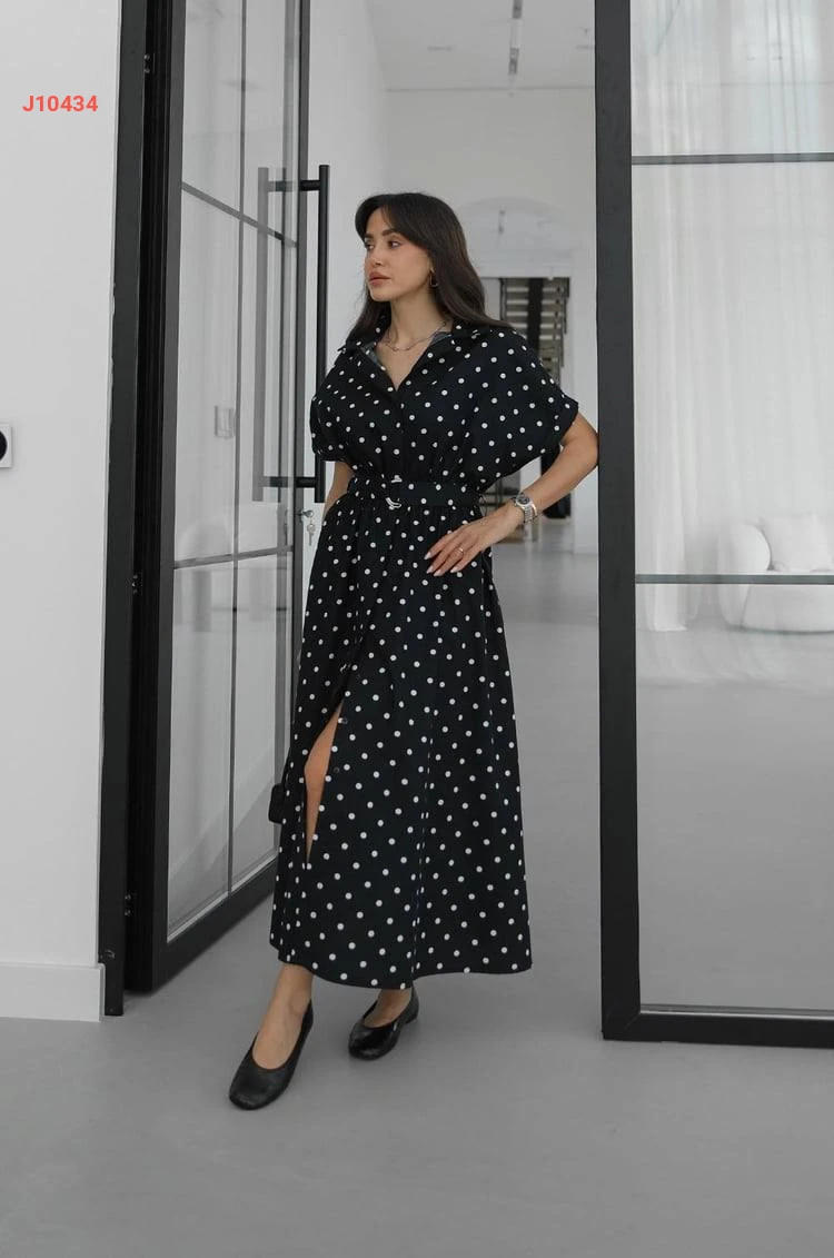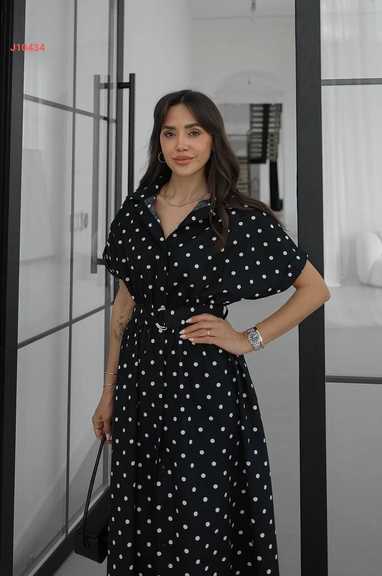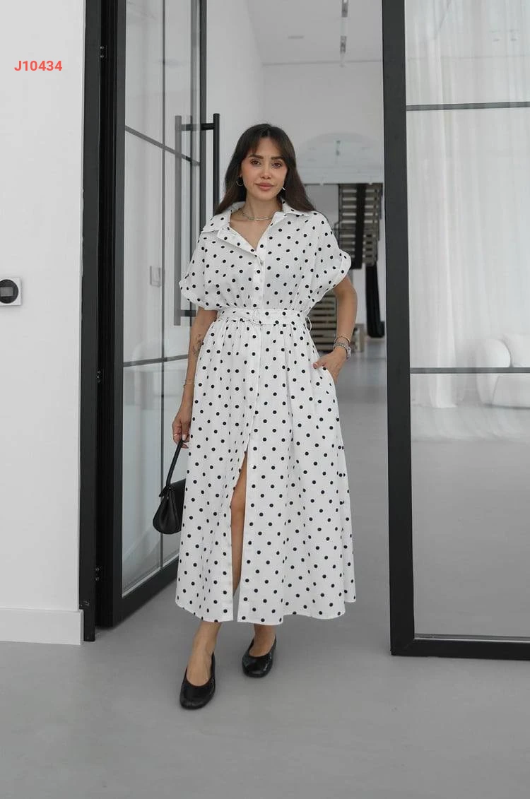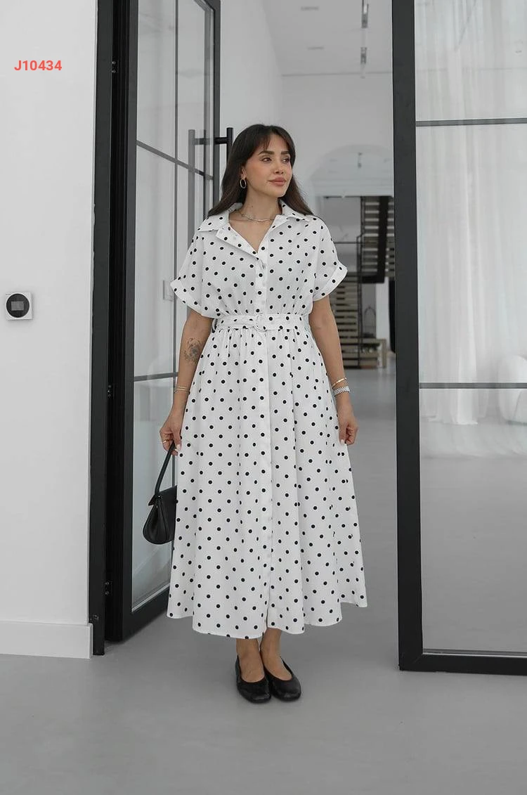 فستان صيفي منقط بأزرار