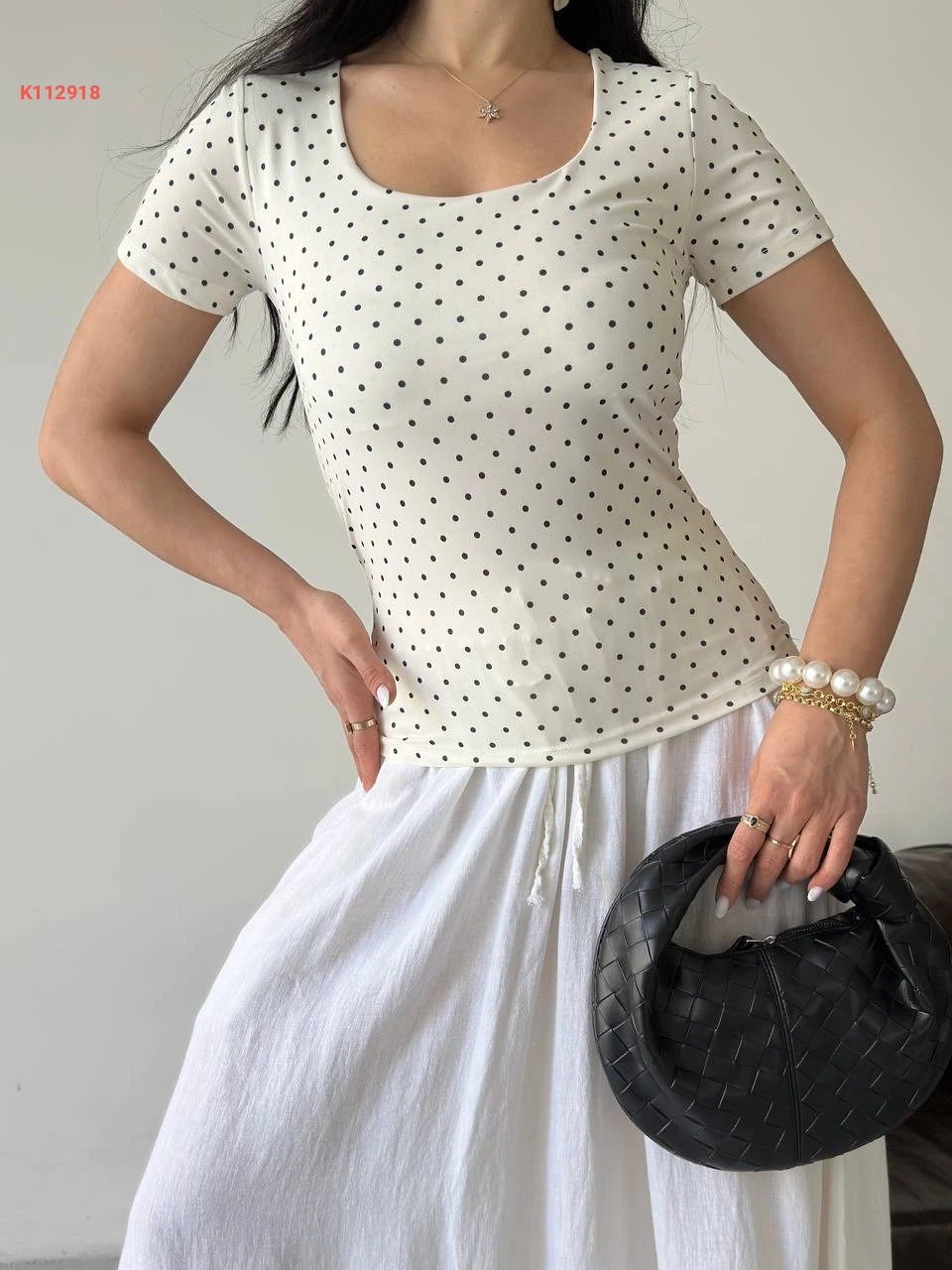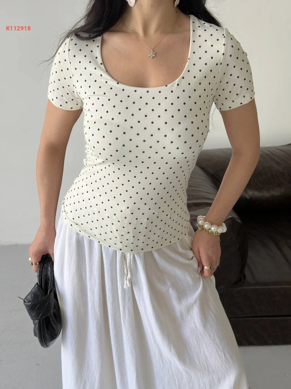 تيشرت منقطة قبة مربعة