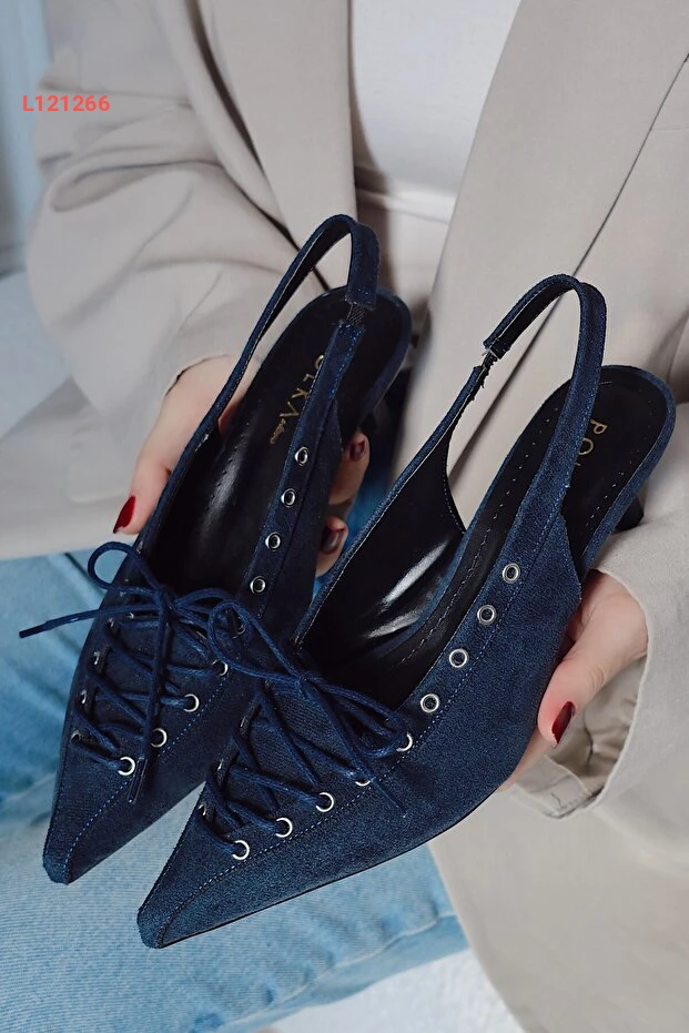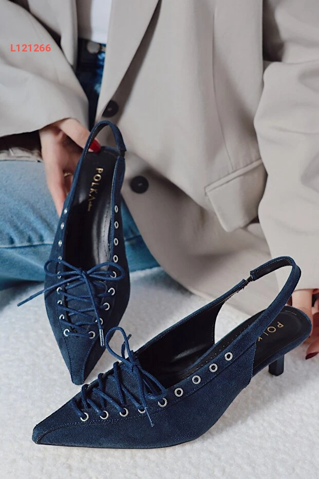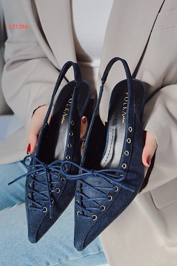 POLKA STORE Best Kapsüllü Bağcık Detaylı Sivri Burunlu Kısa Kitten Topuklu Kadın Ayakkabı عالي الجودة. مثالي للاستخدام اليومي مع متانة وتصميم ممتاز.