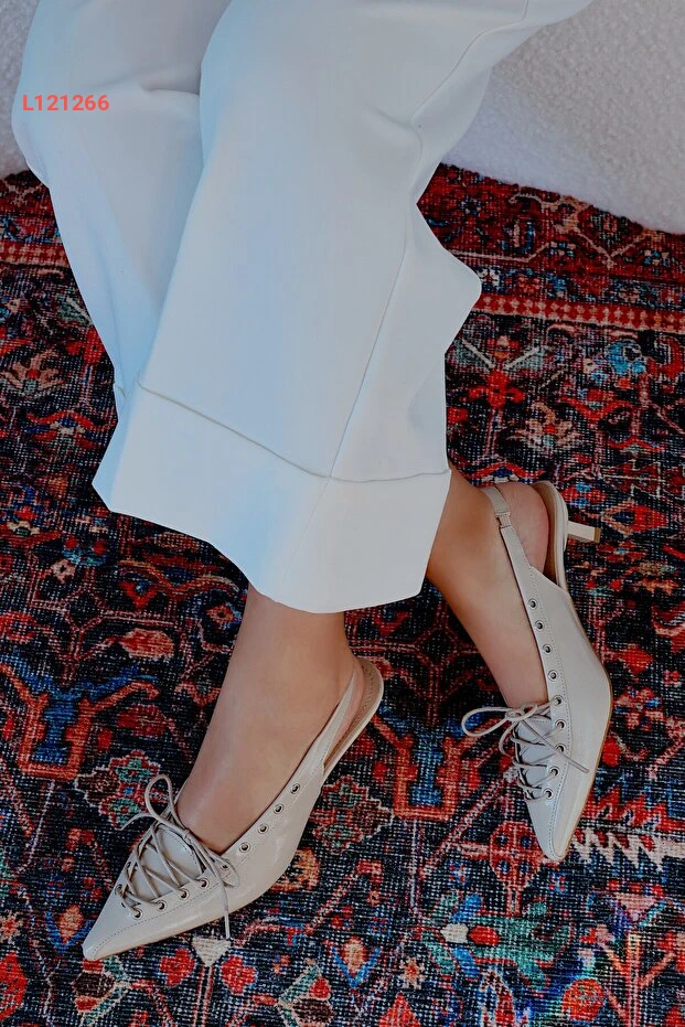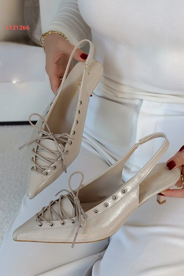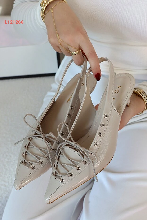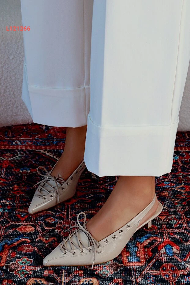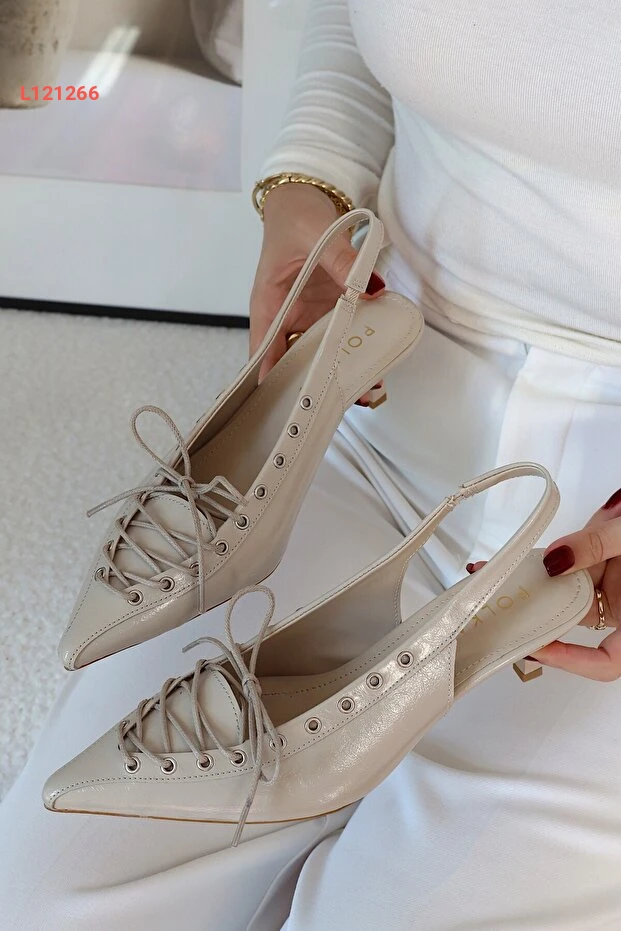 POLKA STORE Best Kapsüllü Bağcık Detaylı Sivri Burunlu Kısa Kitten Topuklu Kadın Ayakkabı