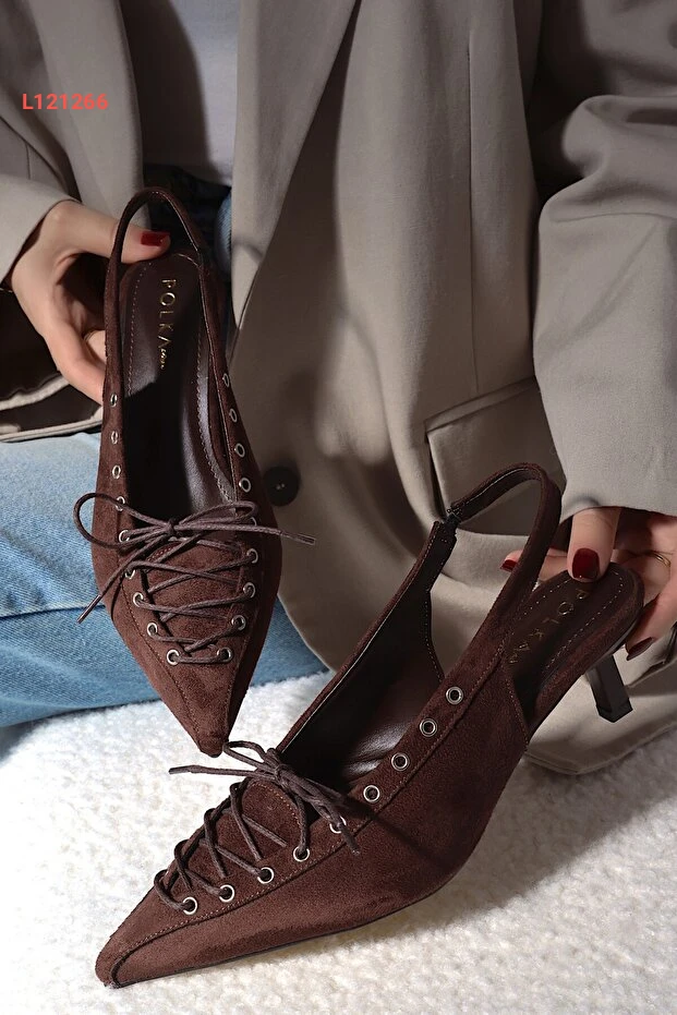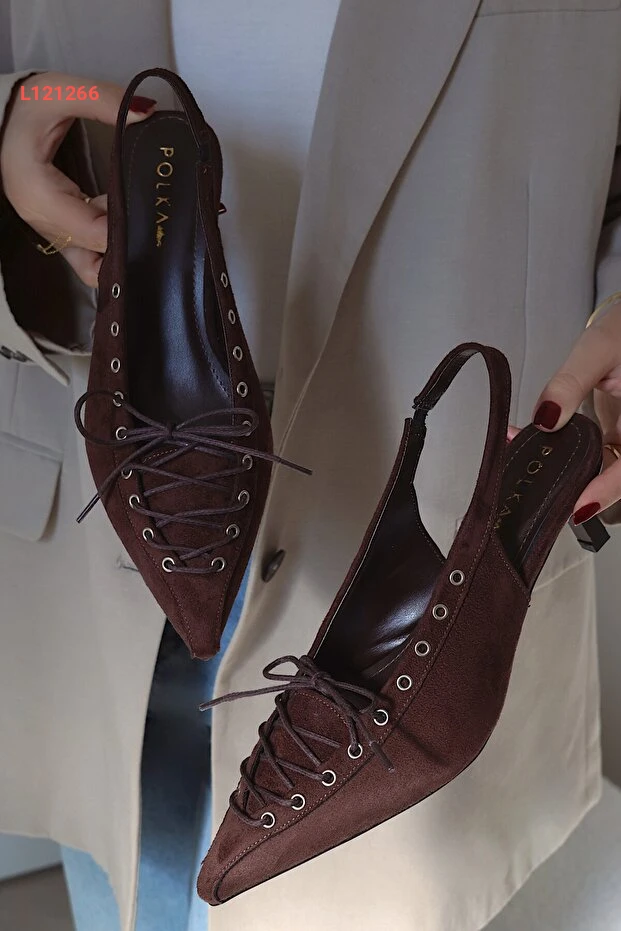 POLKA STORE Best Kapsüllü Bağcık Detaylı Sivri Burunlu Kısa Kitten Topuklu Kadın Ayakkabı عالي الجودة. مثالي للاستخدام اليومي مع متانة وتصميم ممتاز.