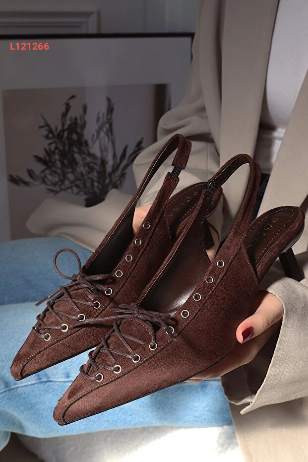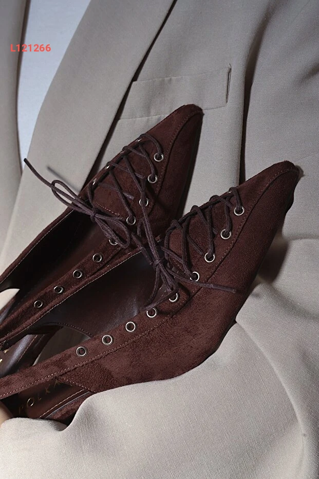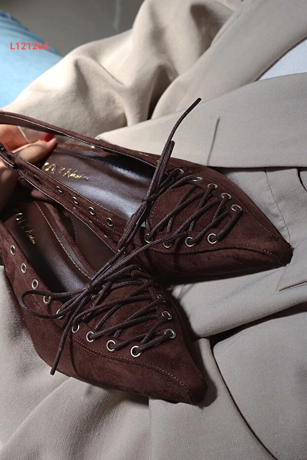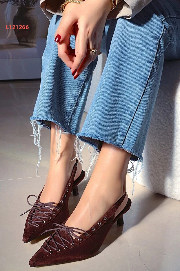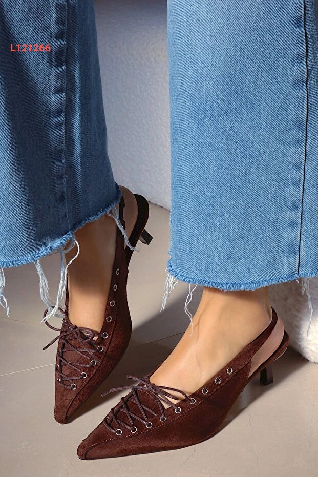 POLKA STORE Best Kapsüllü Bağcık Detaylı Sivri Burunlu Kısa Kitten Topuklu Kadın Ayakkabı