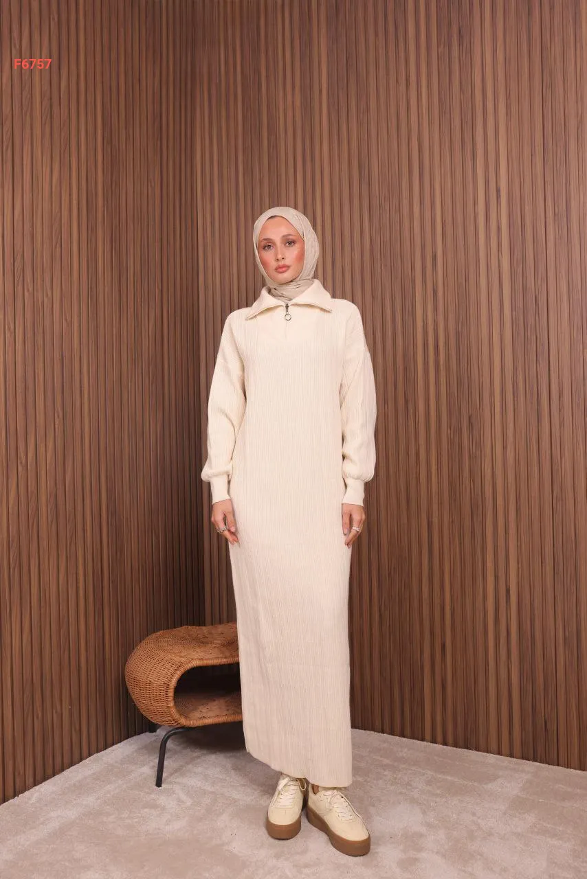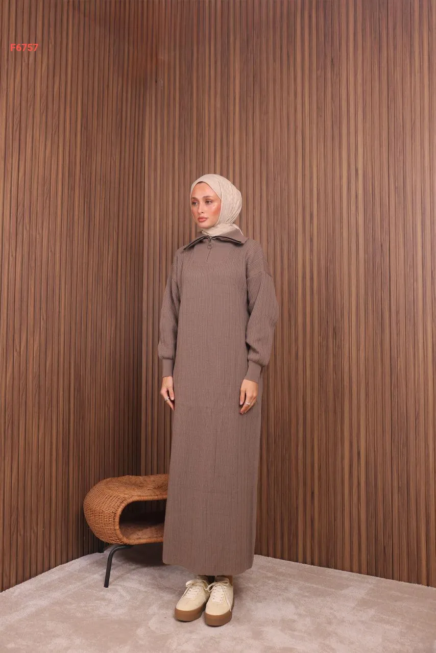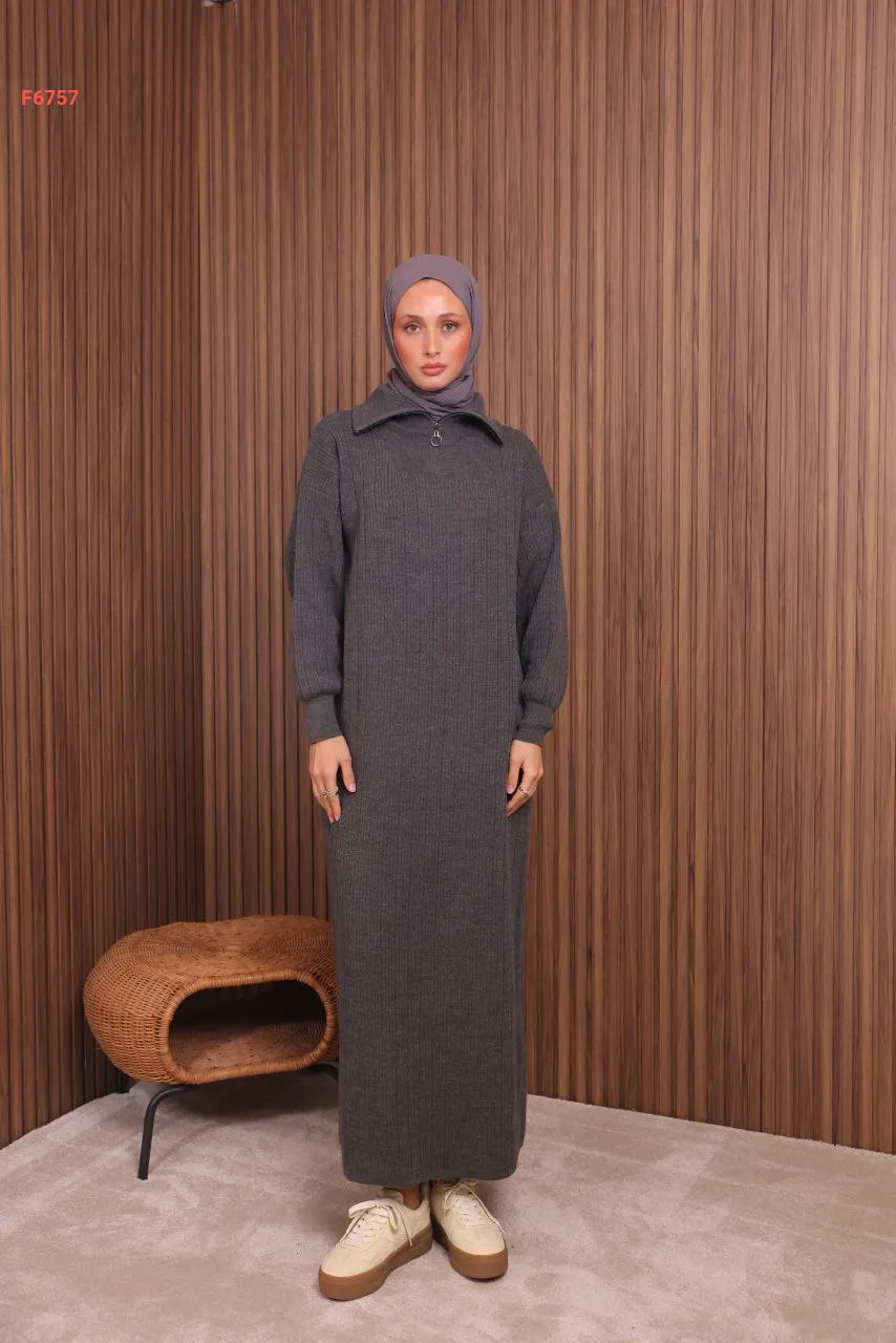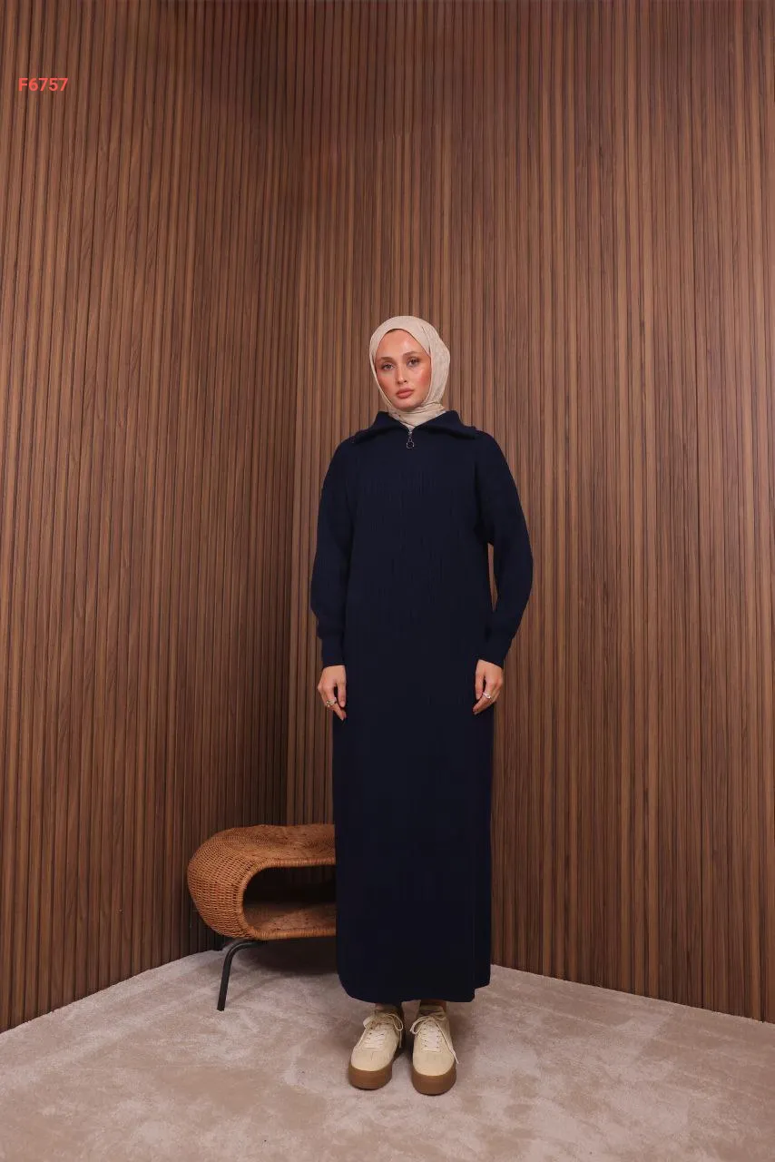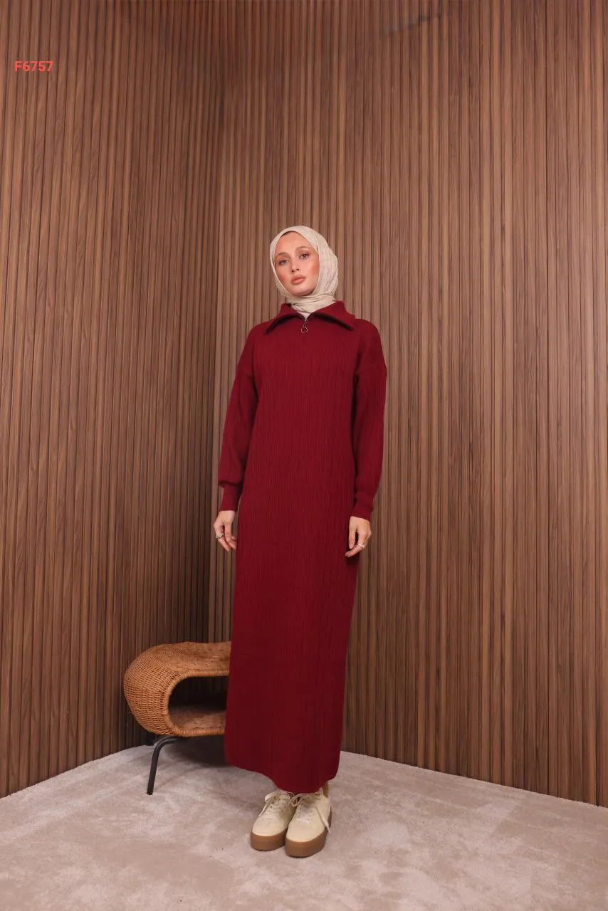 فستان تريكو طويل قبة بولو بسحاب