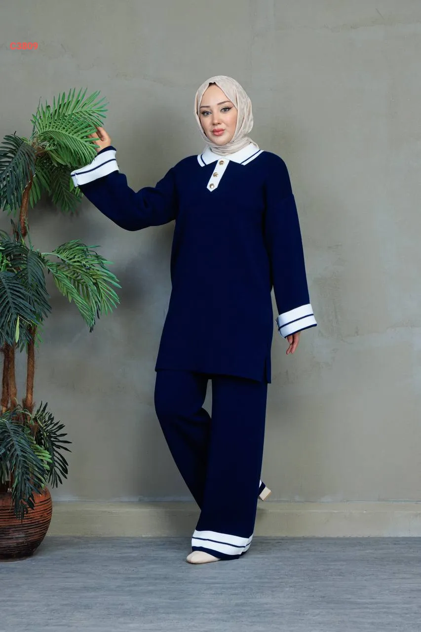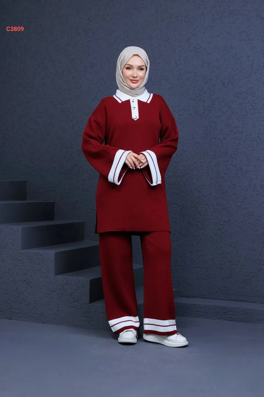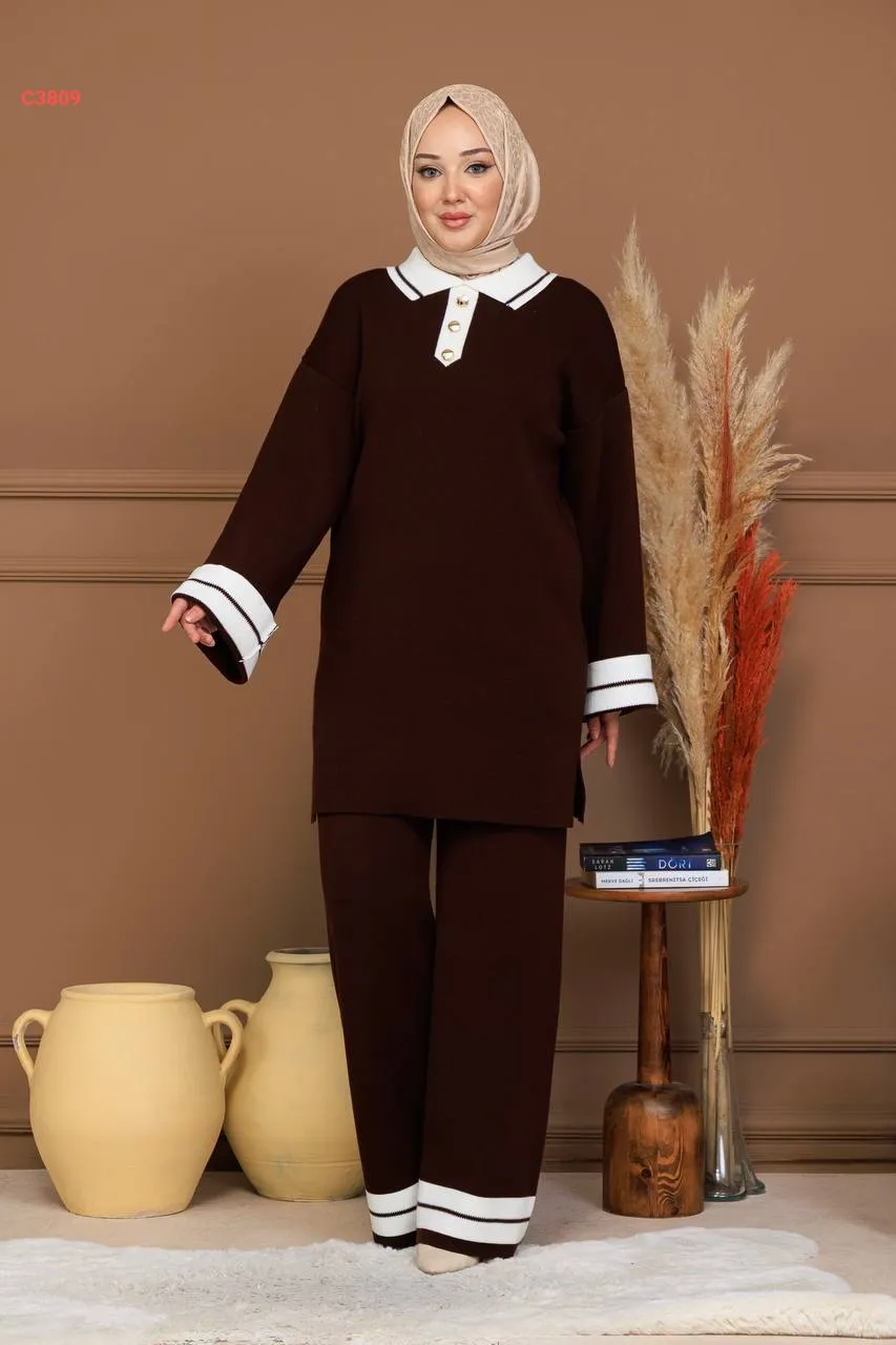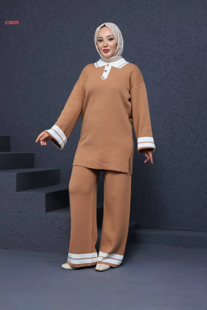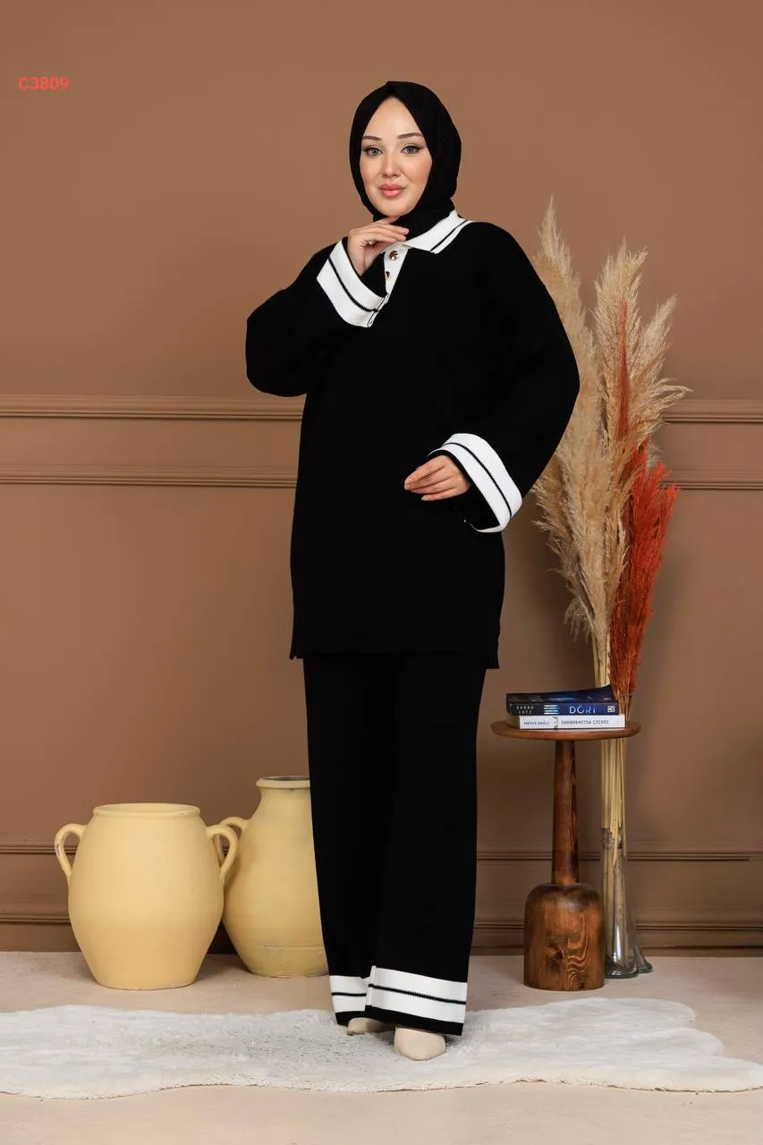 طقم بنطال تريكو وتونيك قبة بولو