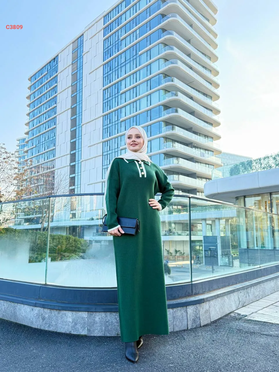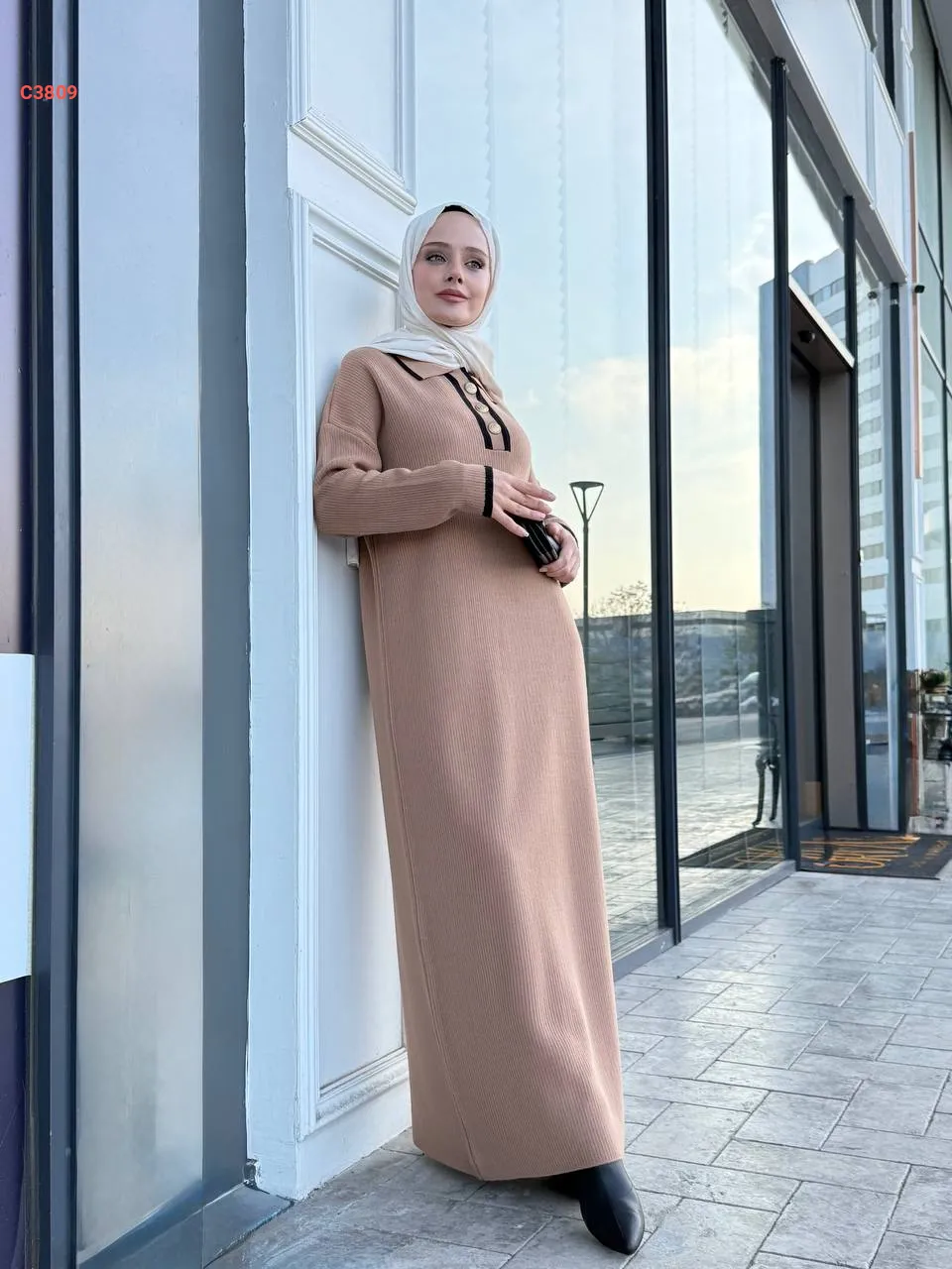 فستان تريكو طويل قبة بولو