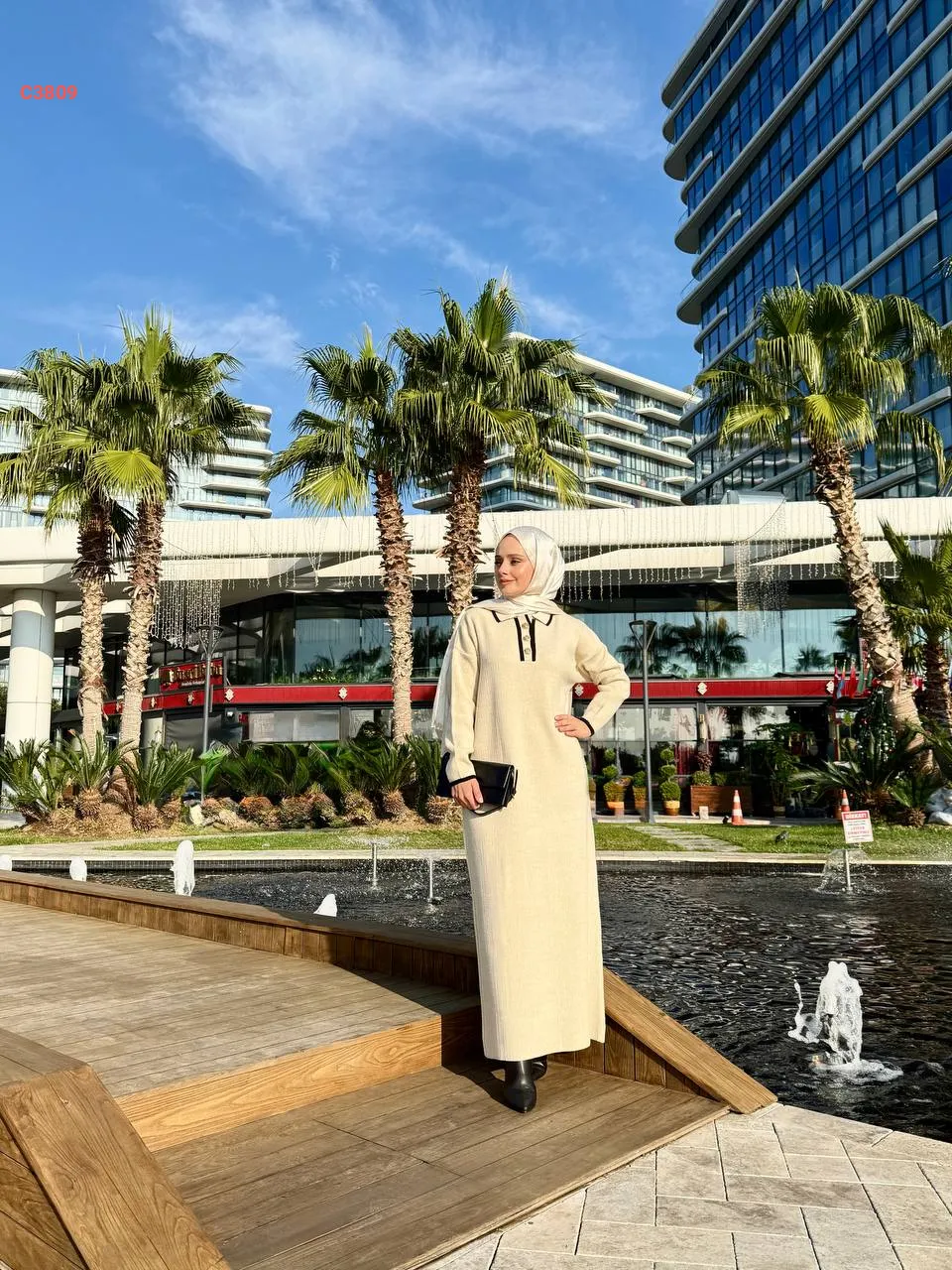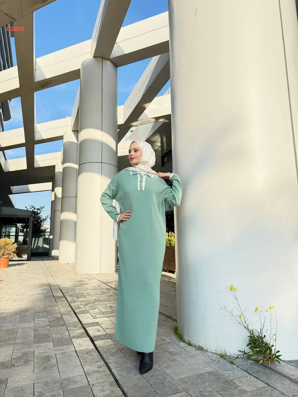 فستان سادة محجبات مع زنار
