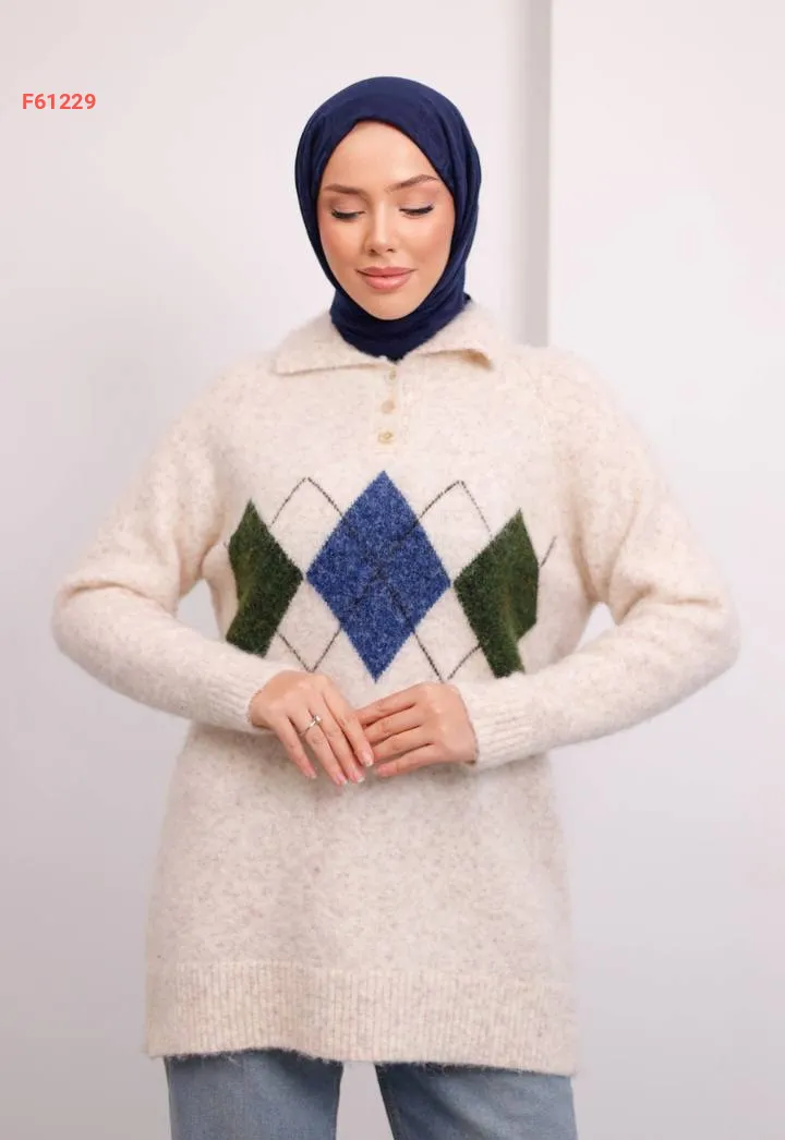 تونيك تريكو منقوش قبة بولو