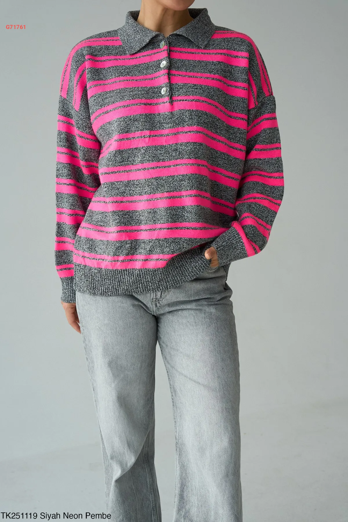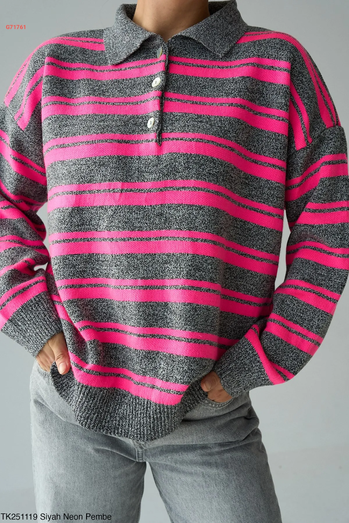 كنزة تريكو مخططة قبة بولو