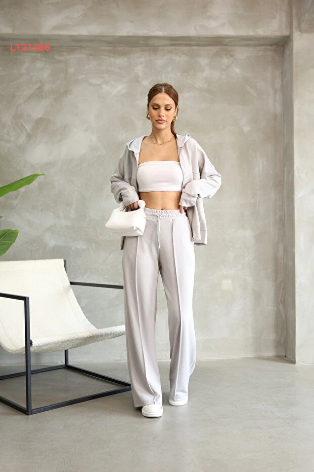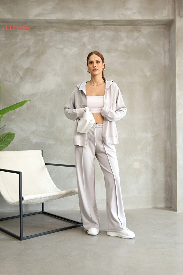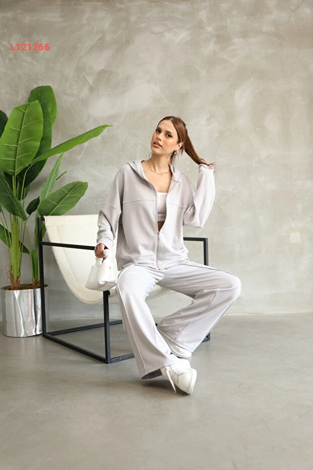طقم رياضي نسائي مكون من قماش سكوبا مودال 24583 رمادي