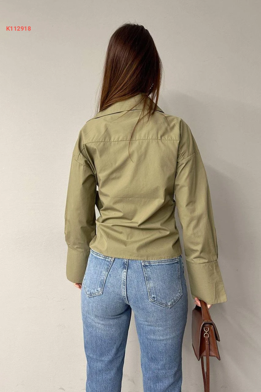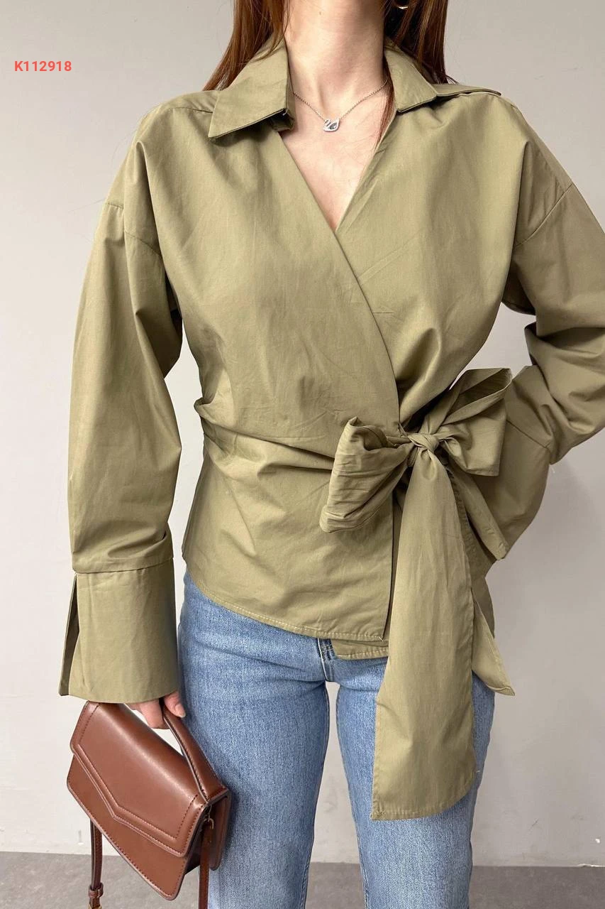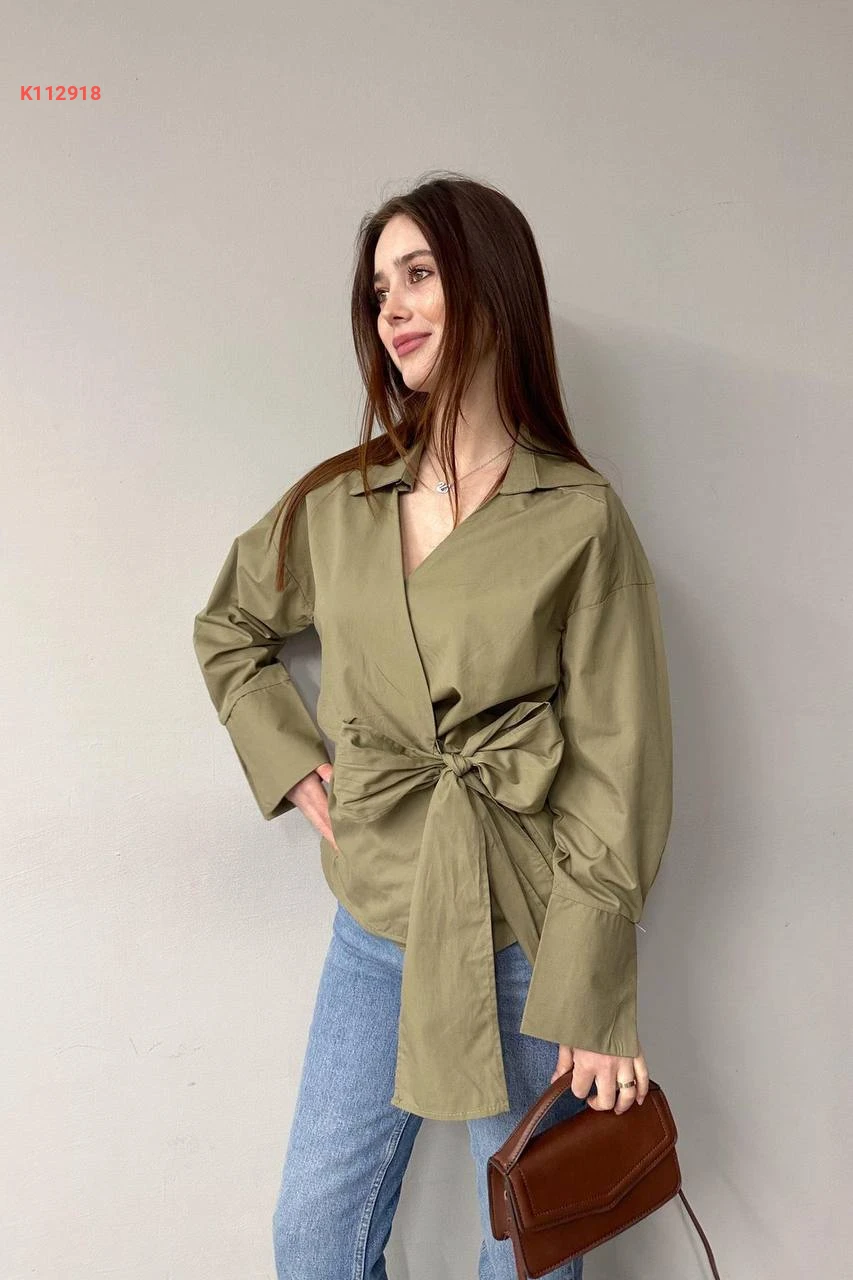 قميص بوبلين لف بربطة جانبية
