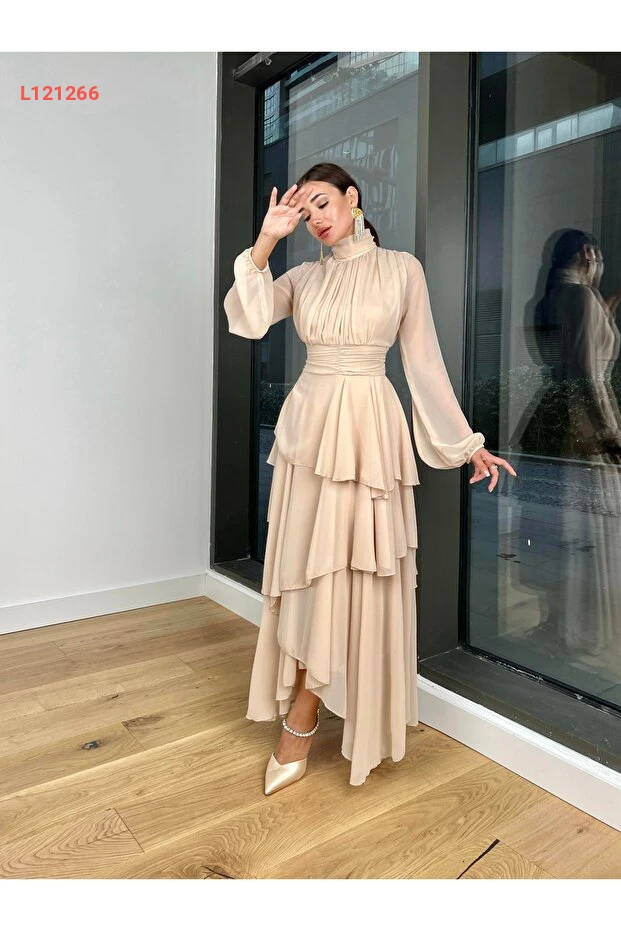 استمتعي بأناقتك مع فستان Afiş Butik بلون البيج الرائع، المصنوع من الشيفون الناعم الذي يضفي لمسة من الأناقة والرقي. تأتي الأكمام الدانتيل الشفافة الجميلة والتصميم المطبوع بالطيات لتمنحك إطلالة فريدة ومميزة، مثالية لمناسباتك الخاصة أو الخروجات اليومية. ارتديه واستمتعي بالراحة والجمال في كل لحظة!