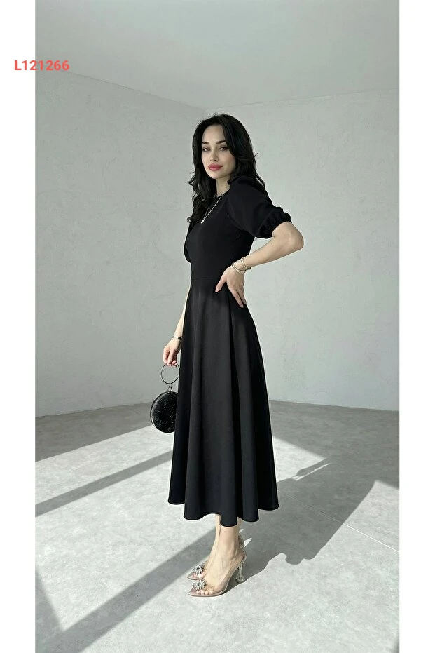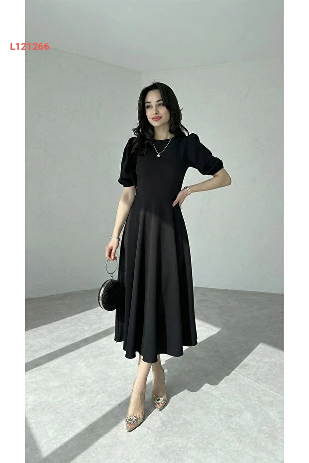 فستان ميدي أسود بأكمام كاربوز من افيتش بوتيك