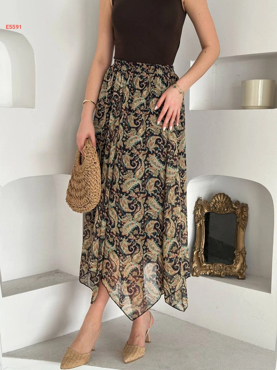 تنورة شيفون معرقة بخصر مطاط