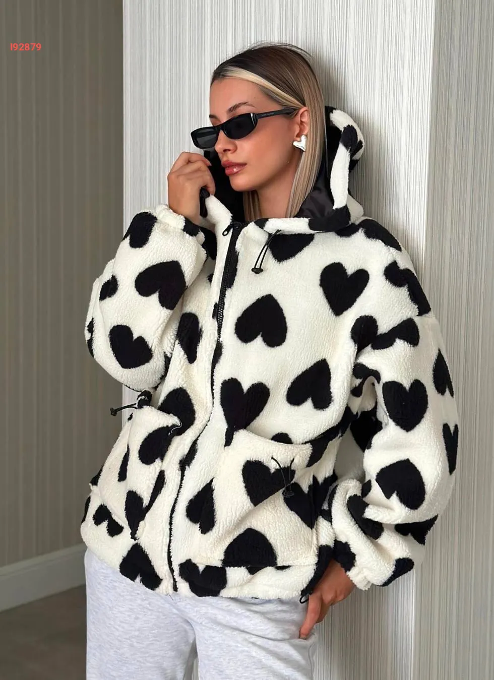 جاكيت فرو مطبع قلوب بسحاب