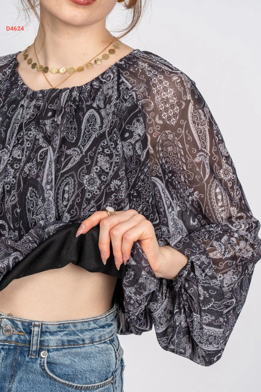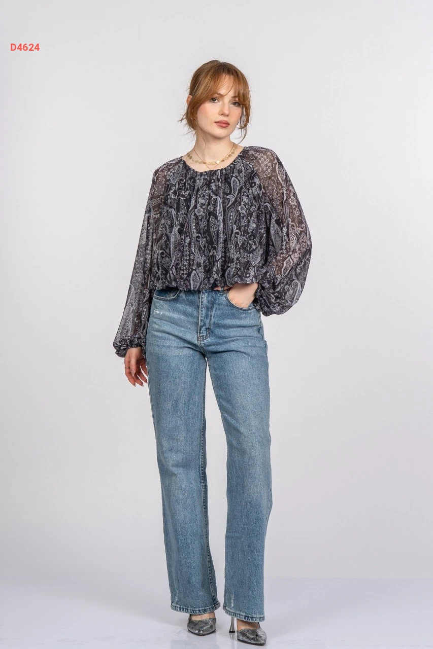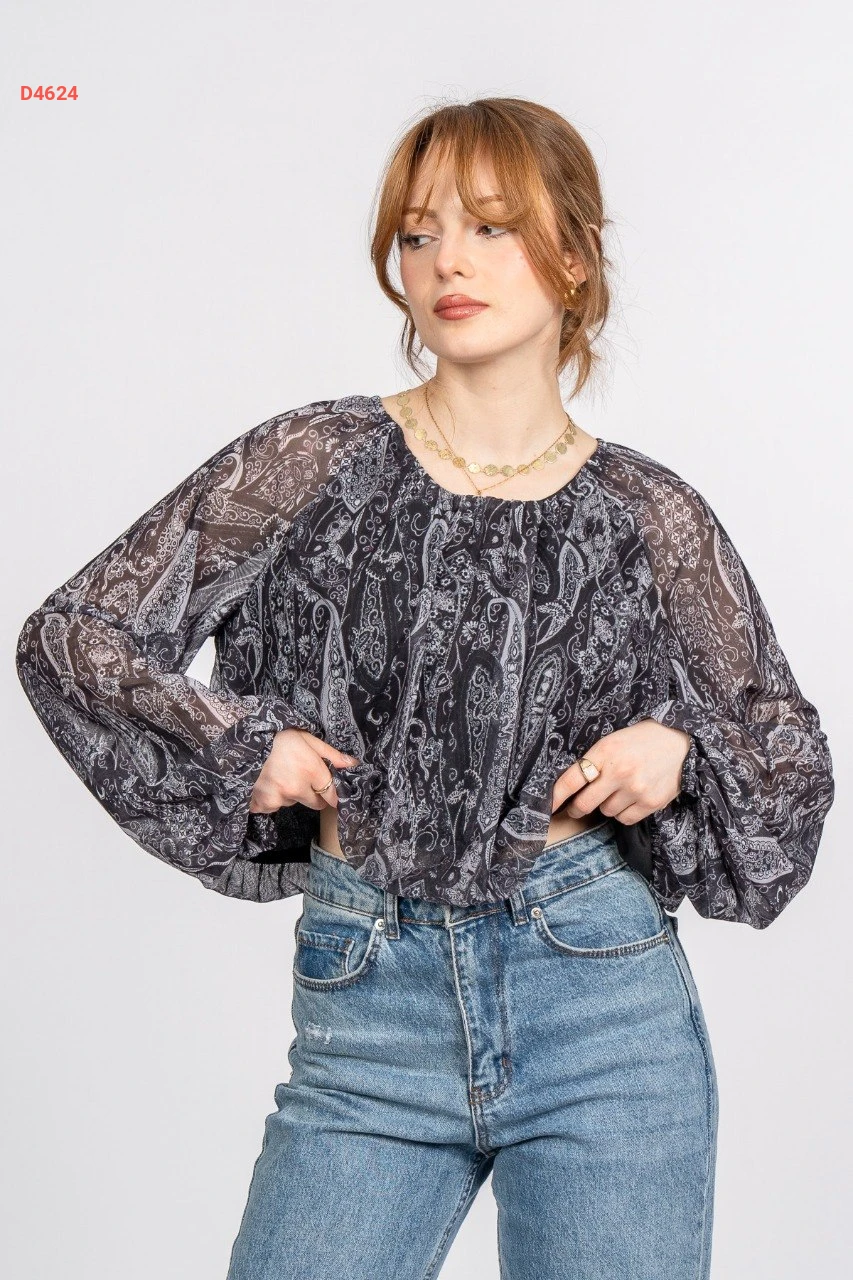 بلوزة كم طويل شيفون معرقة