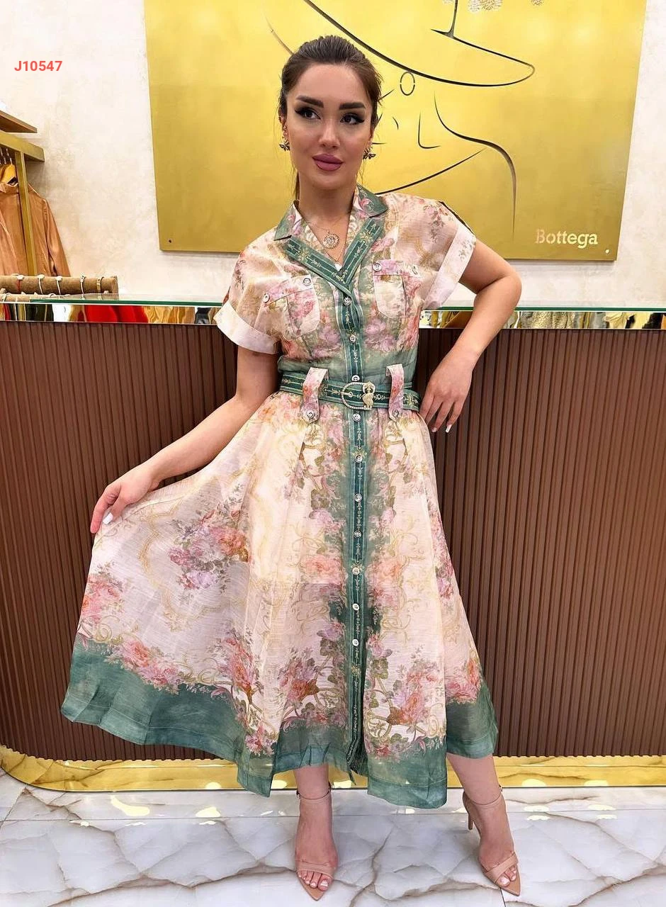 فستان صيفي منقوش بأزرار وزنار