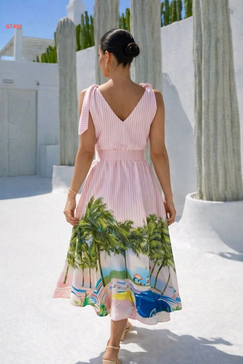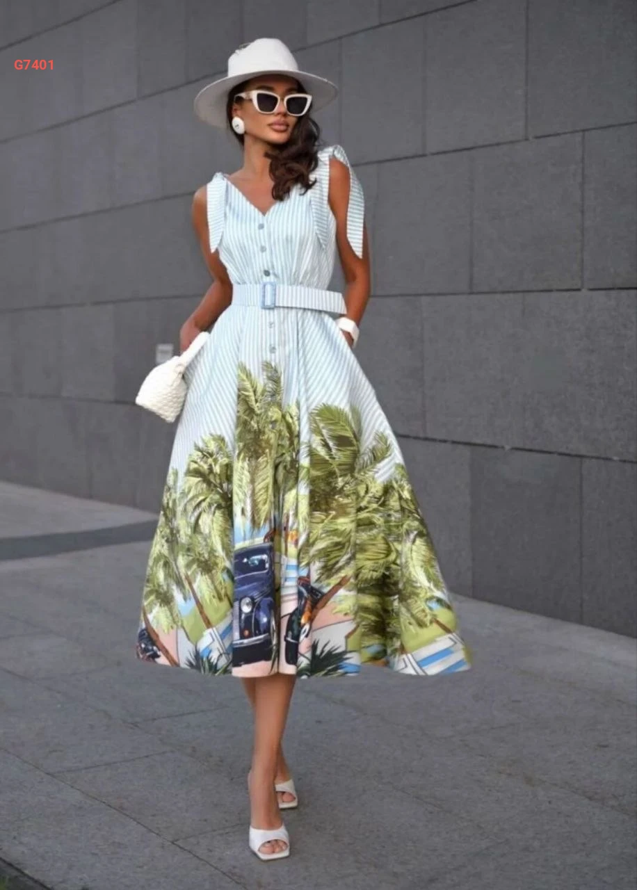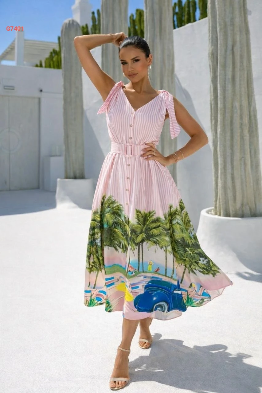 فستان صيفي مطبع بأزرار وربطات عالكتف
