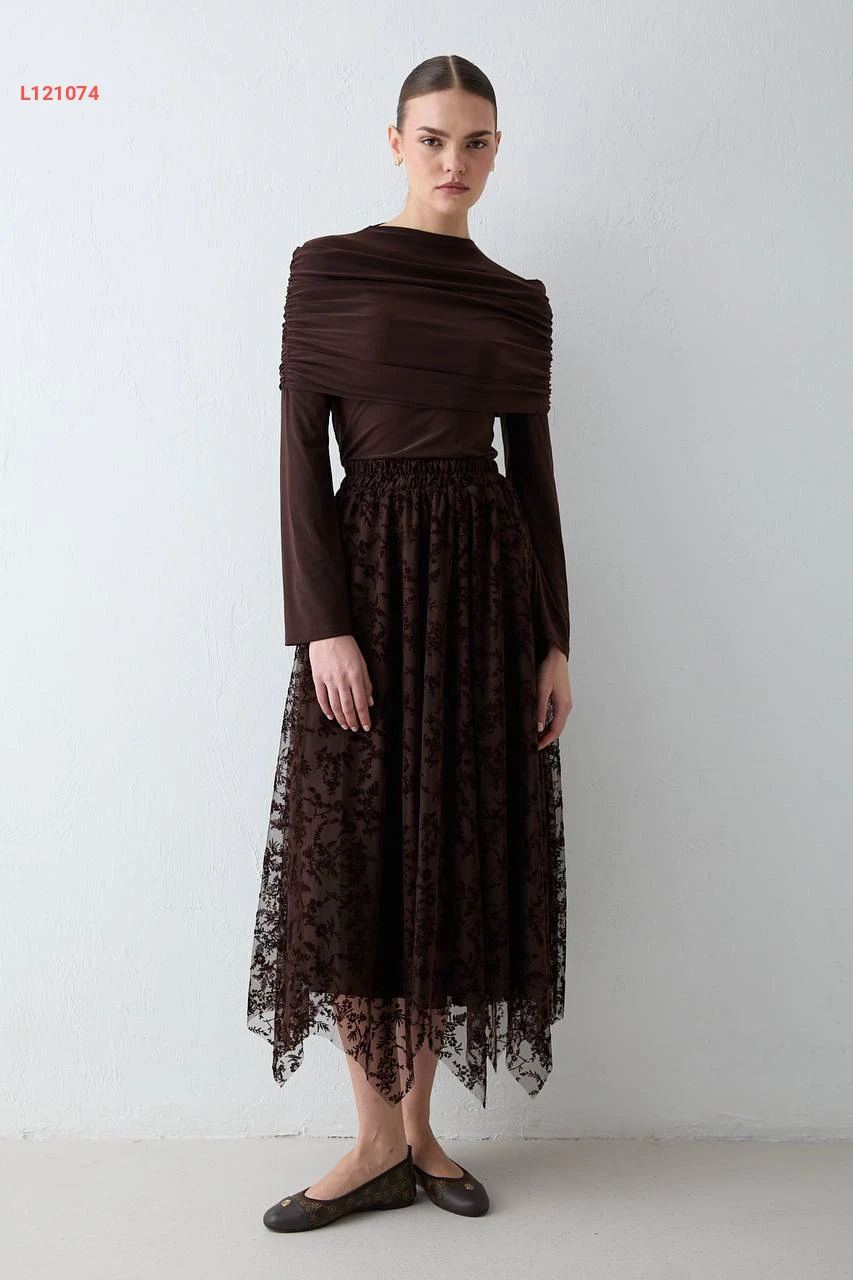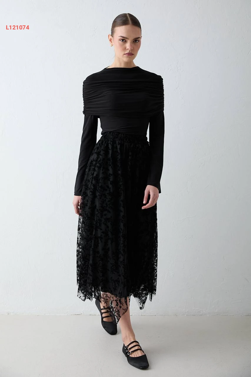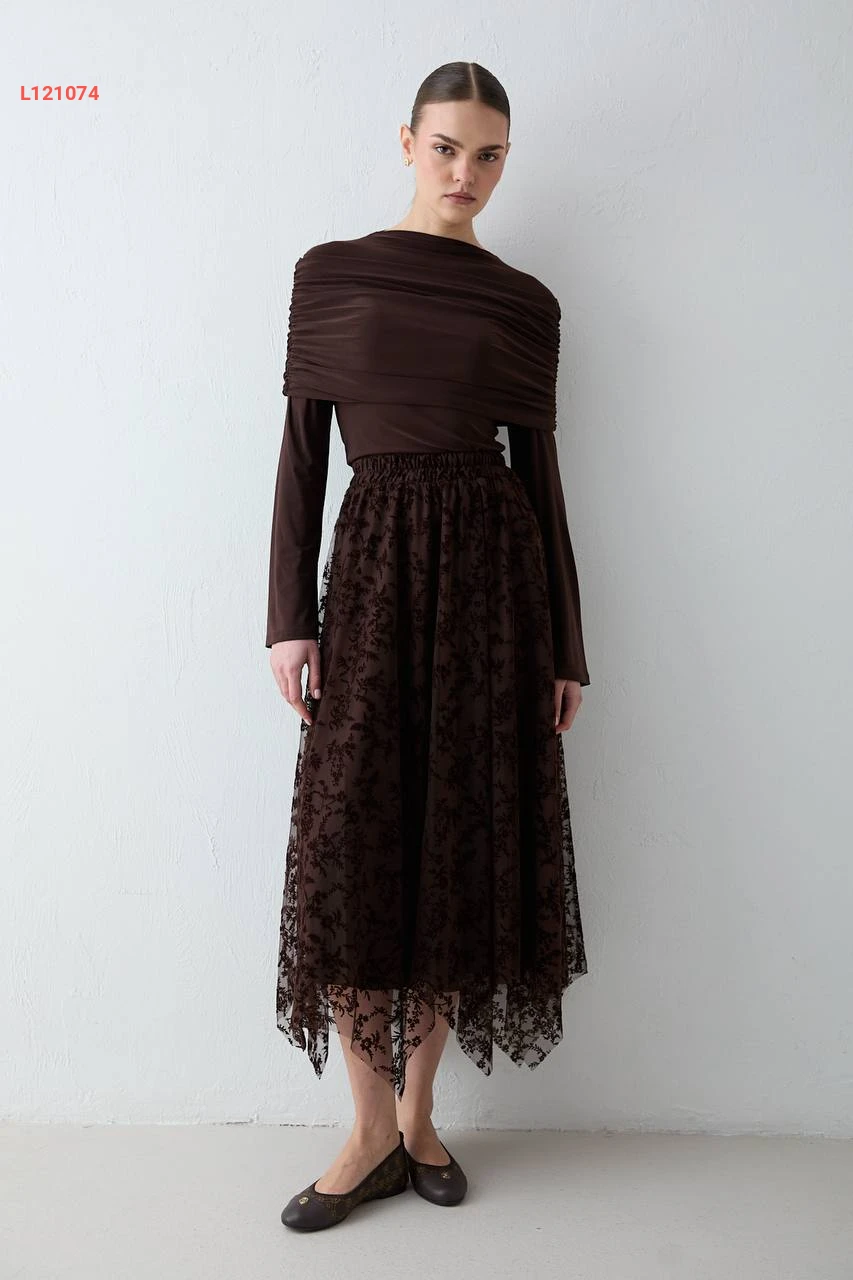 تنورة تول كلوش منقوشة
