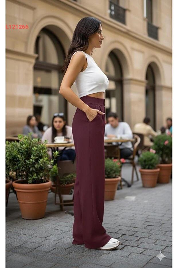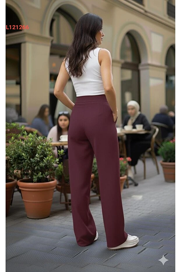قدمي لنفسك لمسة من الأناقة العصرية مع بنطلون بالازو ذو الخصر العالي Pubi KADIN. يتميز هذا التصميم بأنسيابه الرائع الذي يوفر الراحة والحرية في الحركة، بينما يضيف الرباط الأنيق لمسة من التميز. اجعليه خيارك المثالي لكل المناسبات، سواء كانت يومية أو خاصة!