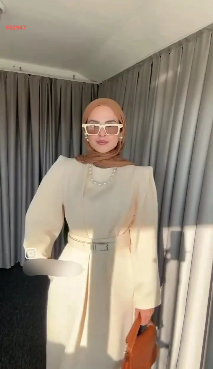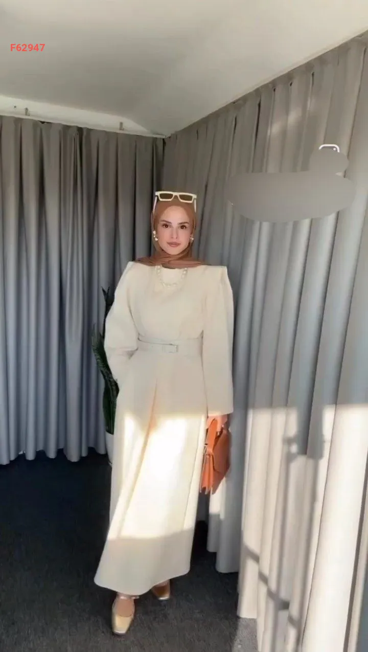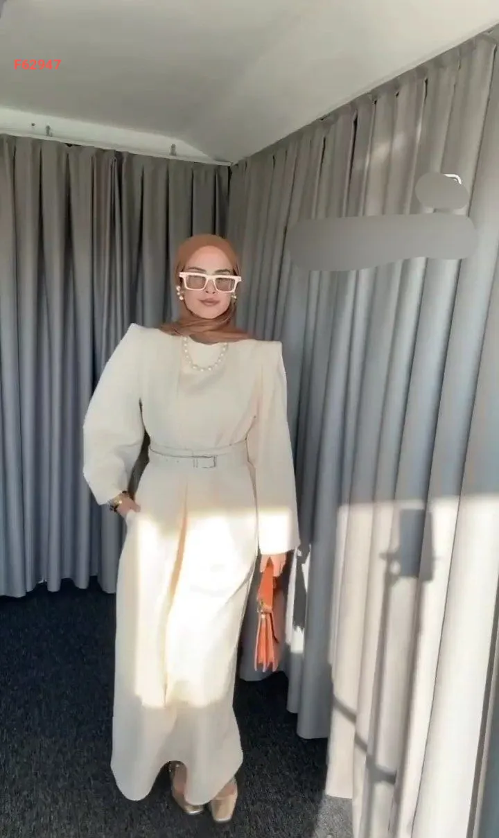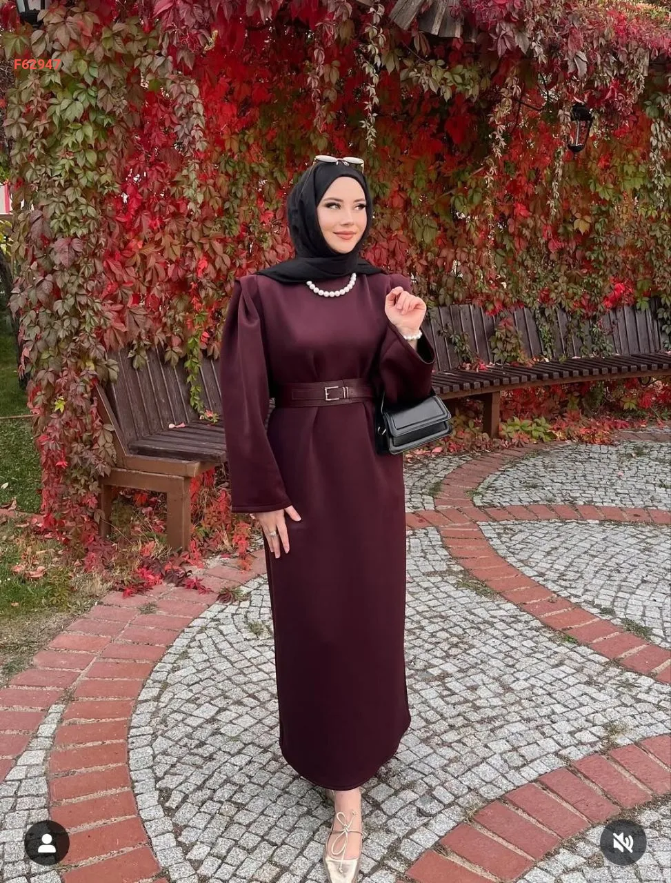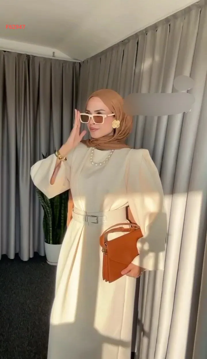 فستان أكتاف نفخ مع حزام جلد محجبات