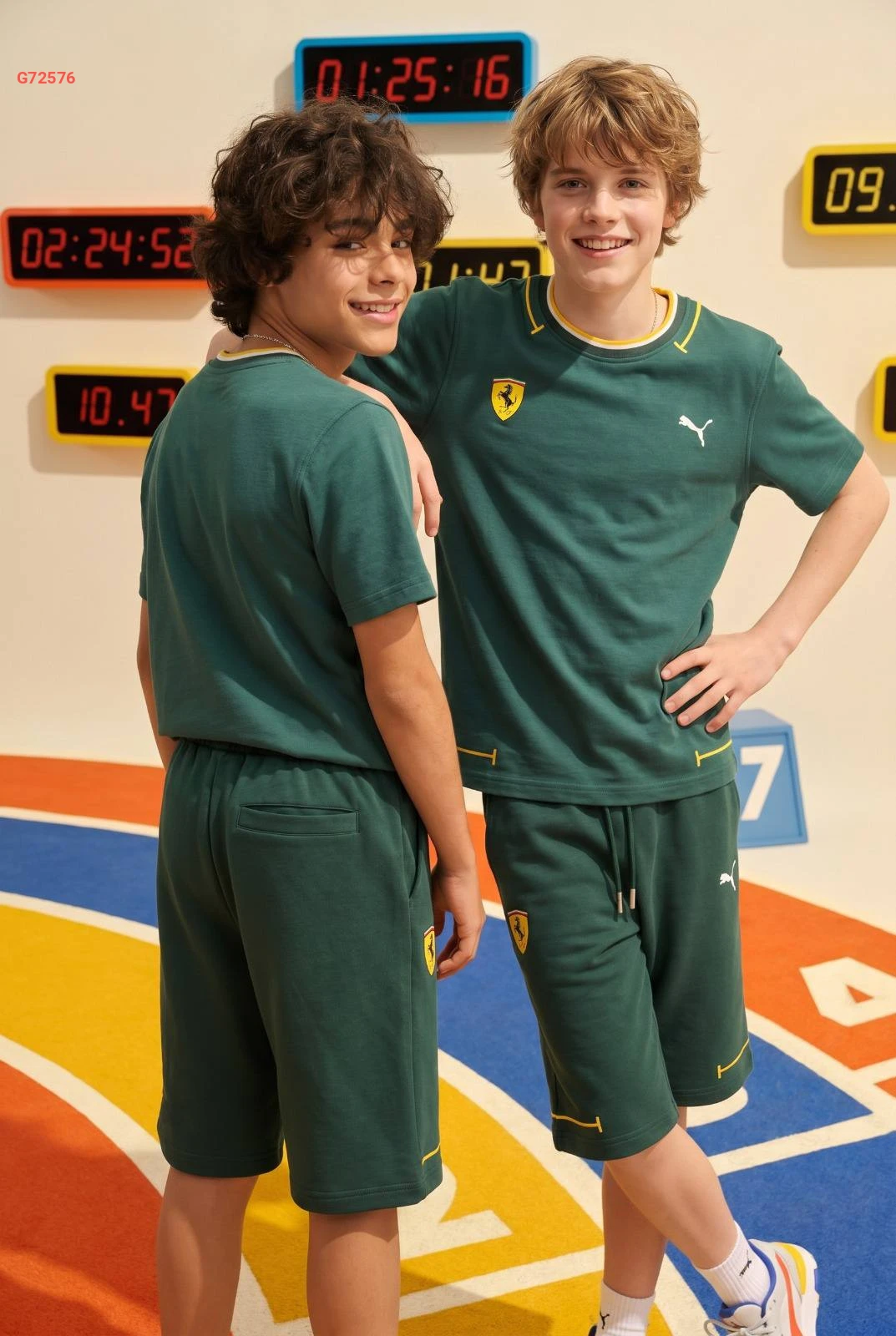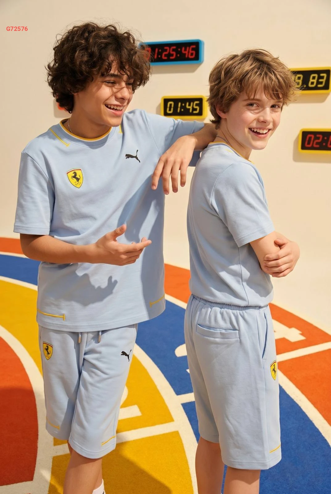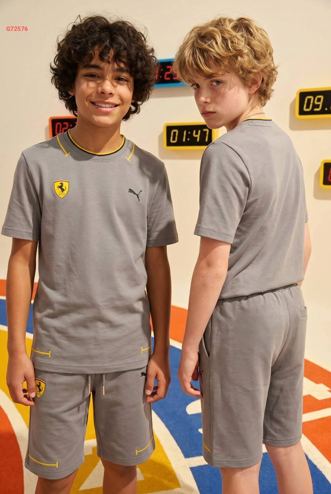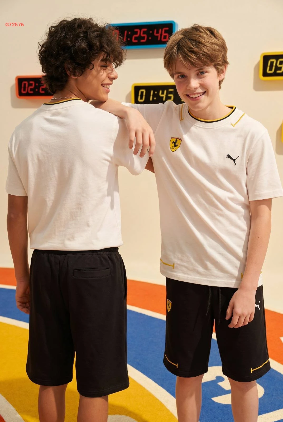 طقم رياضي "PUMA x FERRARI" للأطفال يتكون من تيشرت وشورت مريح