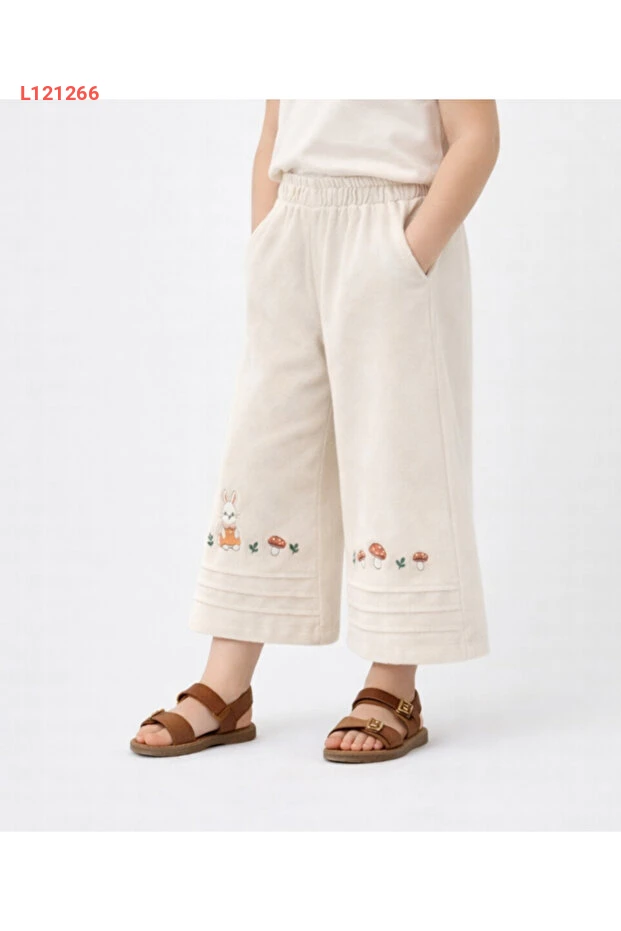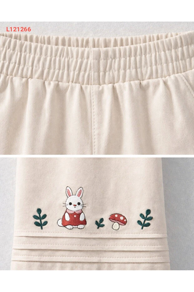بناطيل بيلك بوي للفتيات مزينة بالتطريز مصنوع من القطن بنسبة 100% بلون الحجر (عمر 2-8 سنوات)