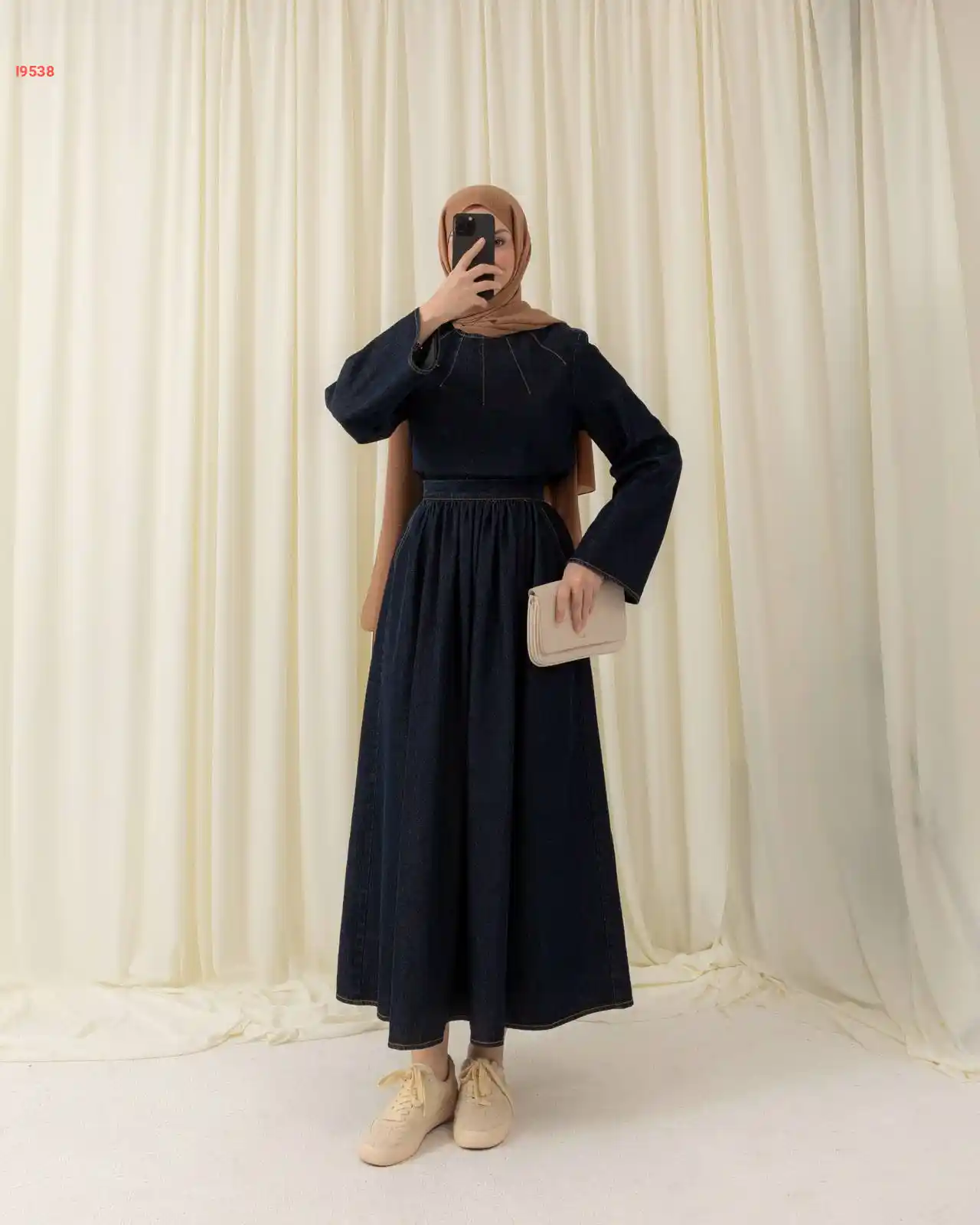 طقم الجينز الغامق تنورة طويل...