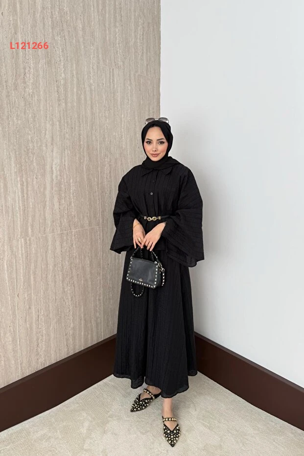 استمتعي بأناقتك مع طقم QUQA الرائع، الذي يتضمن بلوزة بأكمام خفيفة وتنورة مزدانة بتطريز جذاب. يجمع هذا الطقم بين الراحة والفخامة بفضل تصميمه الأسود الأنيق، مما يجعله مثاليًا للمناسبات اليومية والسهرات الخاصة. ارتدي ثقتك وتألقك في كل لحظة!