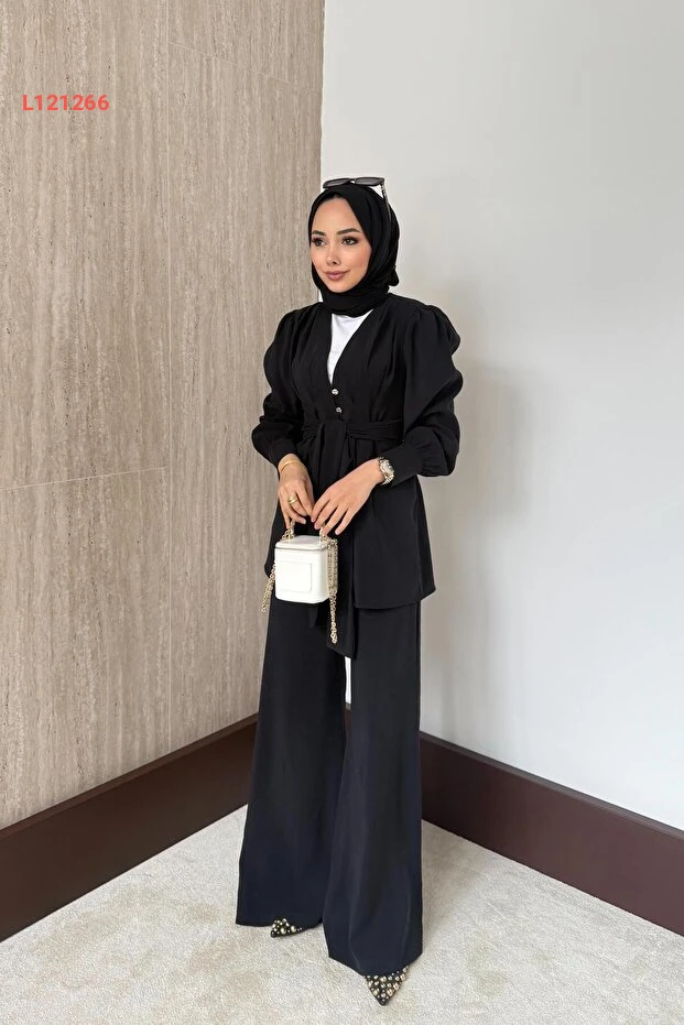 اكتشف أناقة التميز مع طقم QUQA Belden Oturtmalı، الذي يجمع بين الراحة والأناقة في تصميم عصري باللون الأسود. يتميز بنطلونه المجسم الذي يعكس جمال القوام، مما يجعله الخيار المثالي لمختلف المناسبات. ارتدي هذا الطقم لتنعمي بأناقة تسحر الأنظار وتضفي لمسة من الترف على إطلالتك.