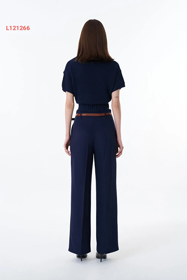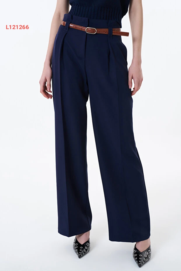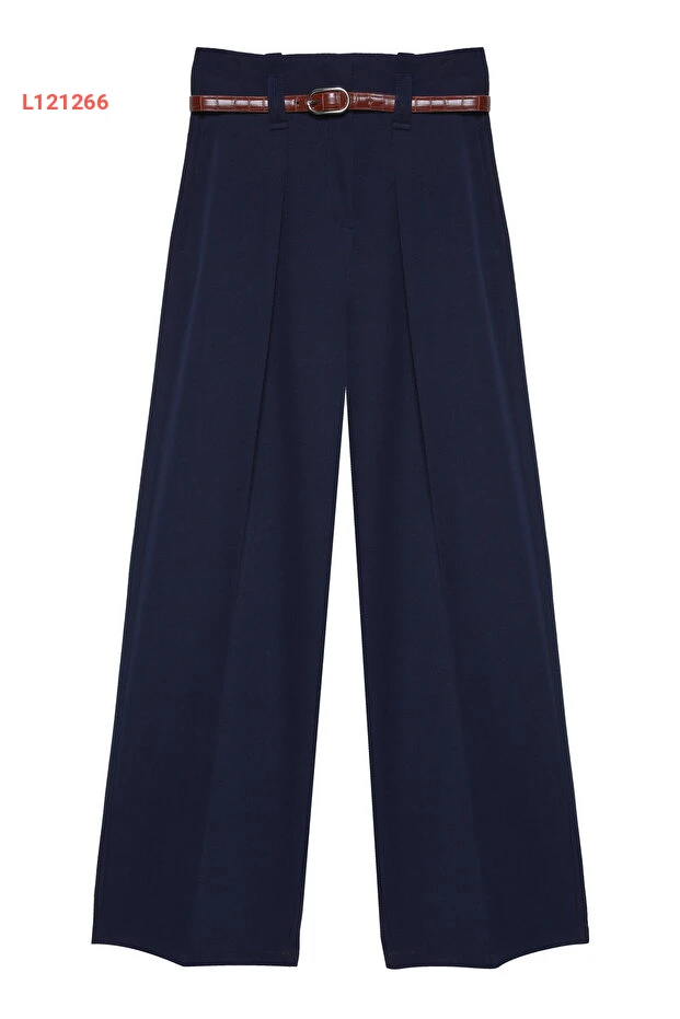 بنطال واسع الخصر عالي الارتفاع بتفاصيل حزام نيلي من كوزو