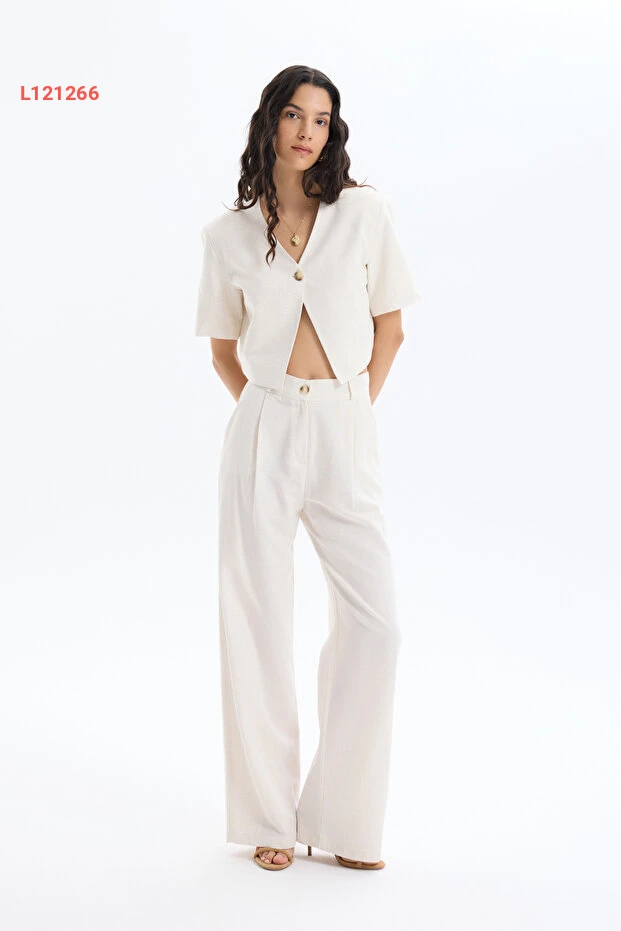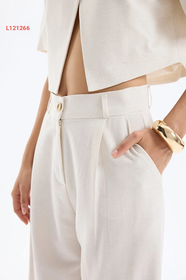 بنطلون كتان ناعم ذو جيوب وتفاصيل من الطبيعة من كوزو