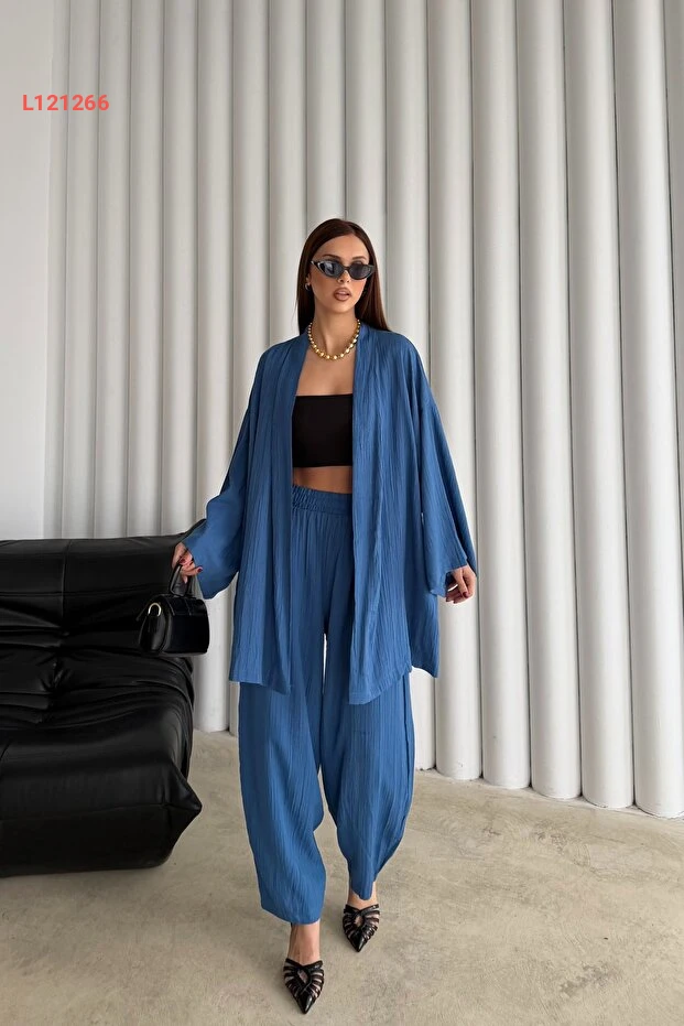 استمتع بأقصى درجات الأناقة والراحة مع طقم R-Style كيمونو شالوار بانطلون. يجمع هذا الطقم الفريد بين تصميم الكيمونو العصري وسهولة ارتداء البنطلون الشالوار، مما يضمن لكِ إطلالة جذابة ومريحة في كل المناسبات. مصنوع من أقمشة عالية الجودة، ستحبين الراحة والحرية في الحركة التي يقدمها لكِ هذا الطقم المميز.