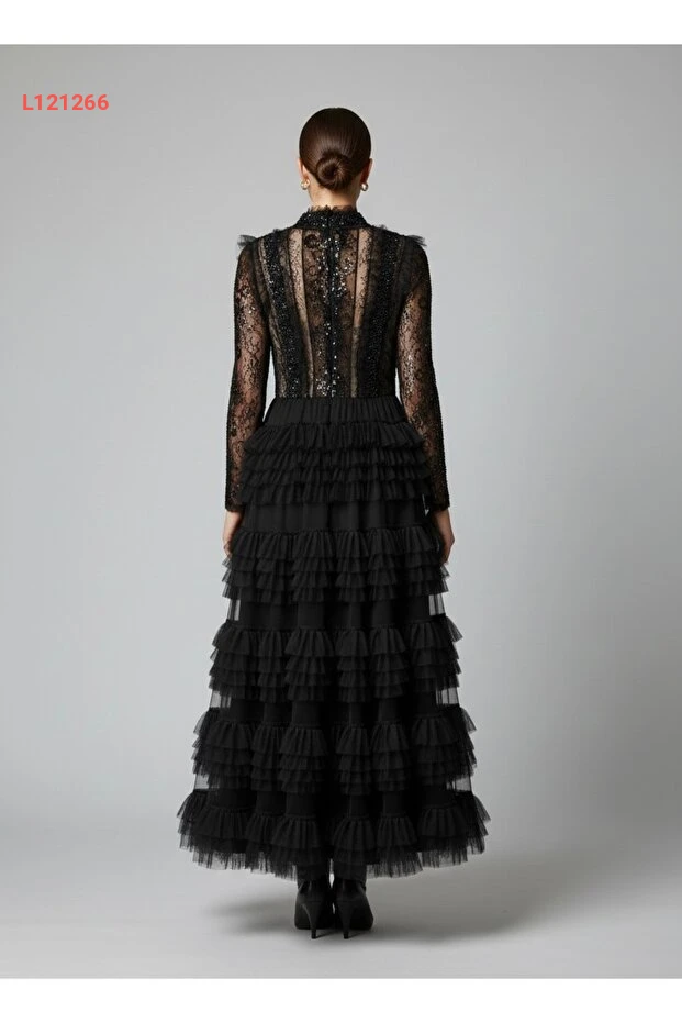 فستان الدانتيل المطرز بالتول متعدد الطبقات من ربيوسا