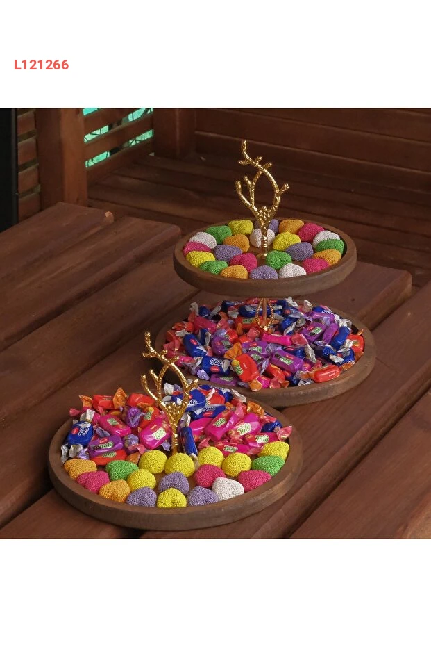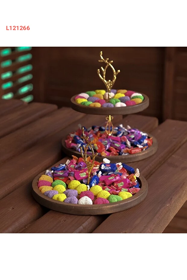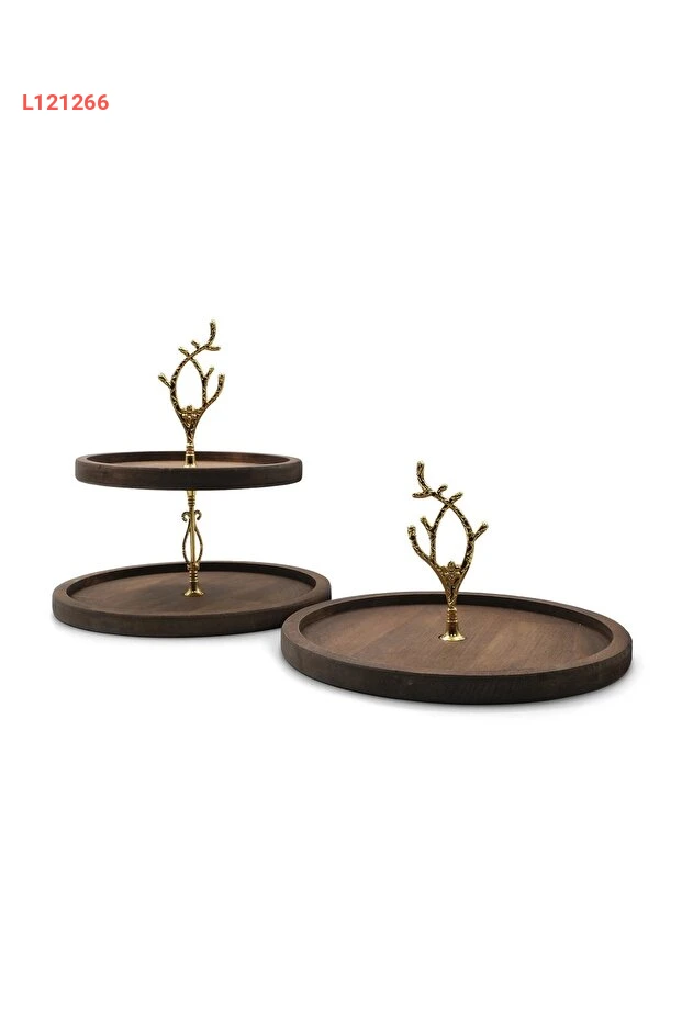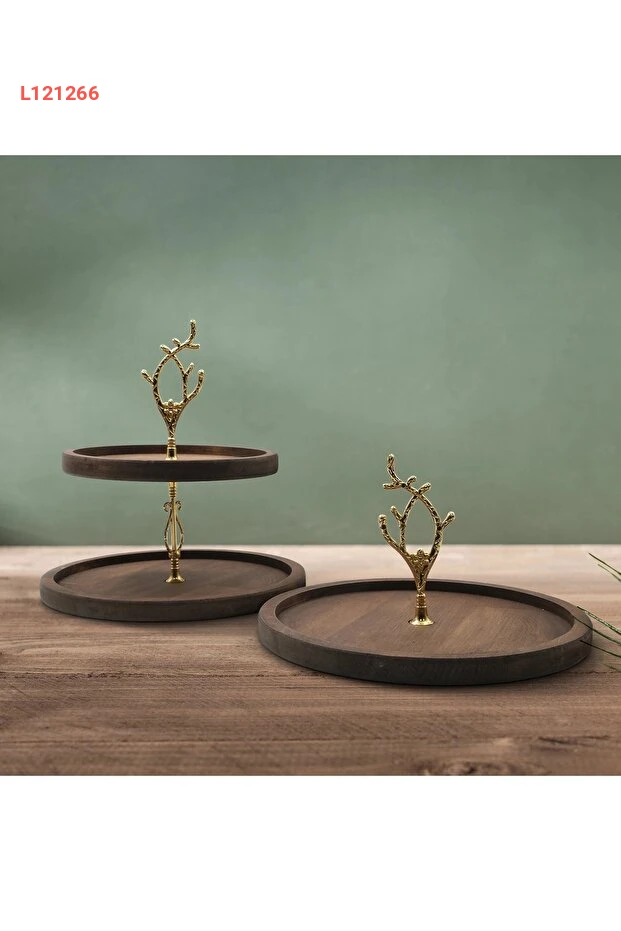 طبق تقديم كعكة وحلويات خشبي ذو مقبض دائري بطبقتين وطبقة واحدة
