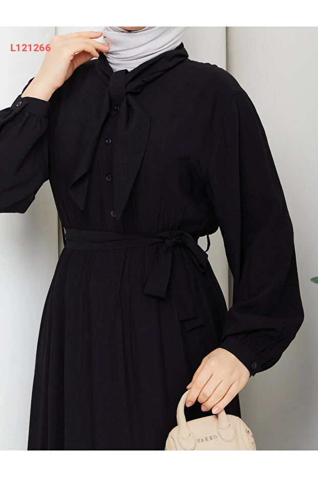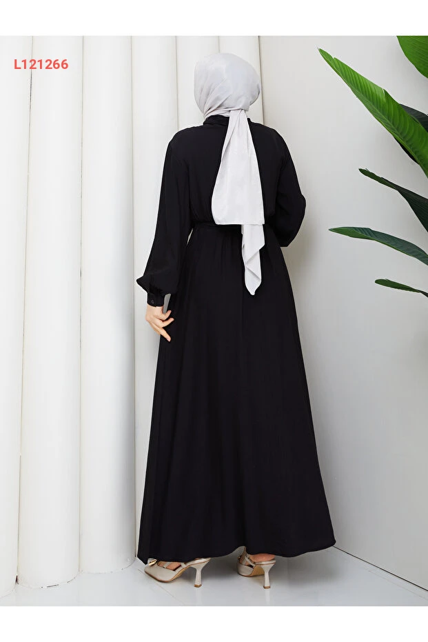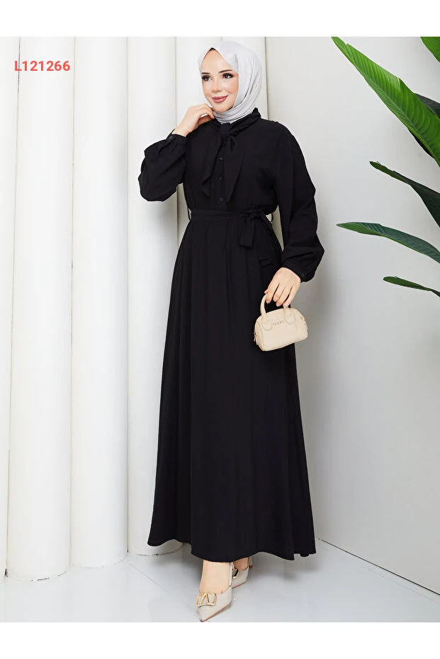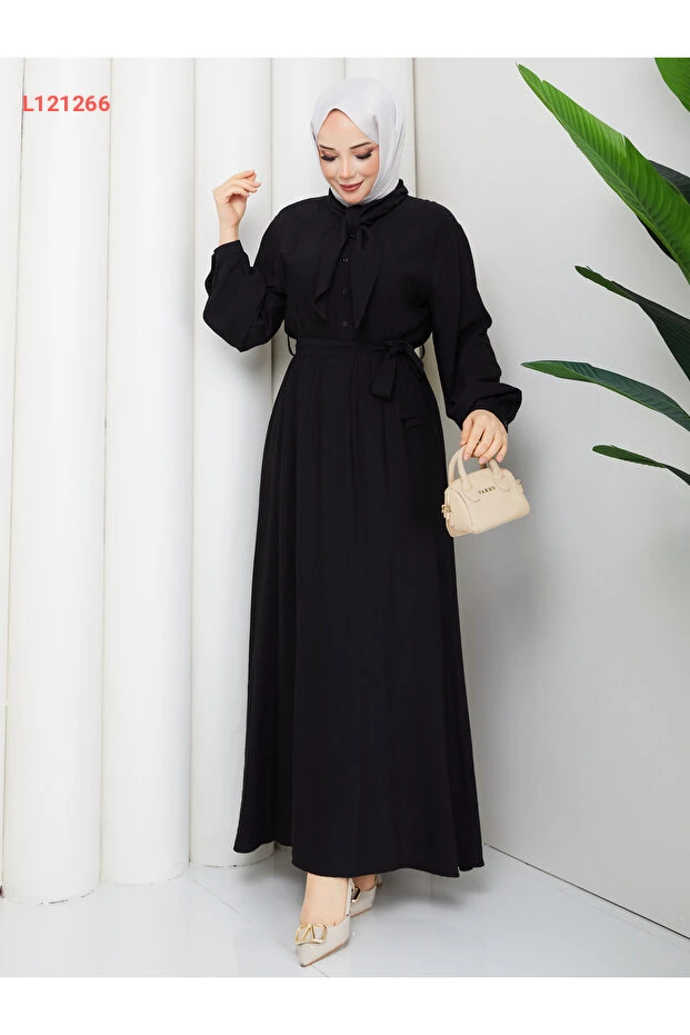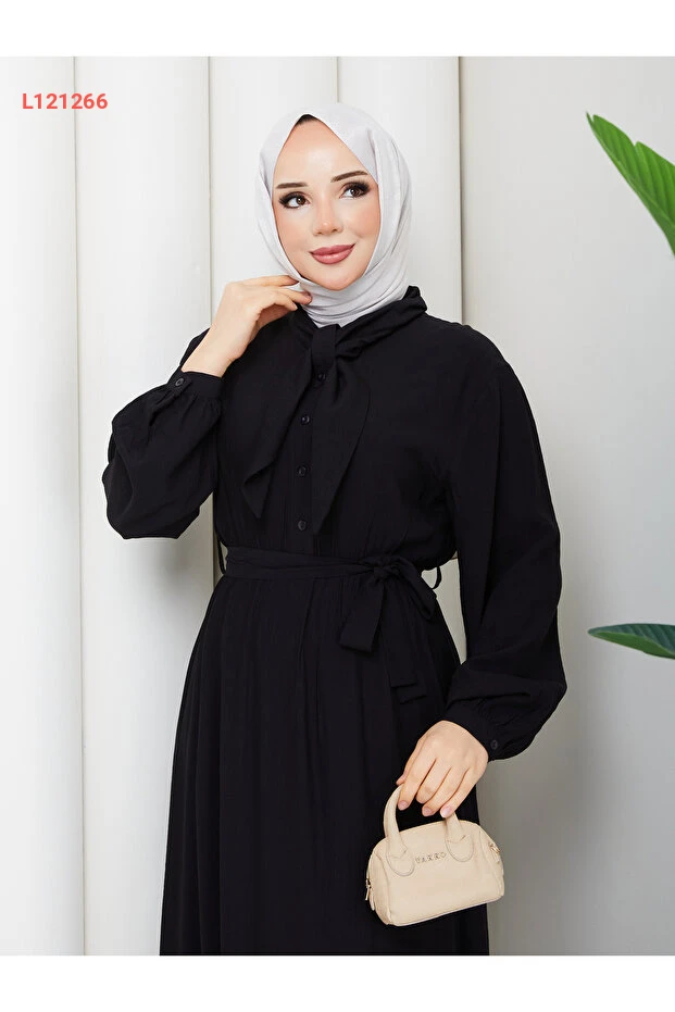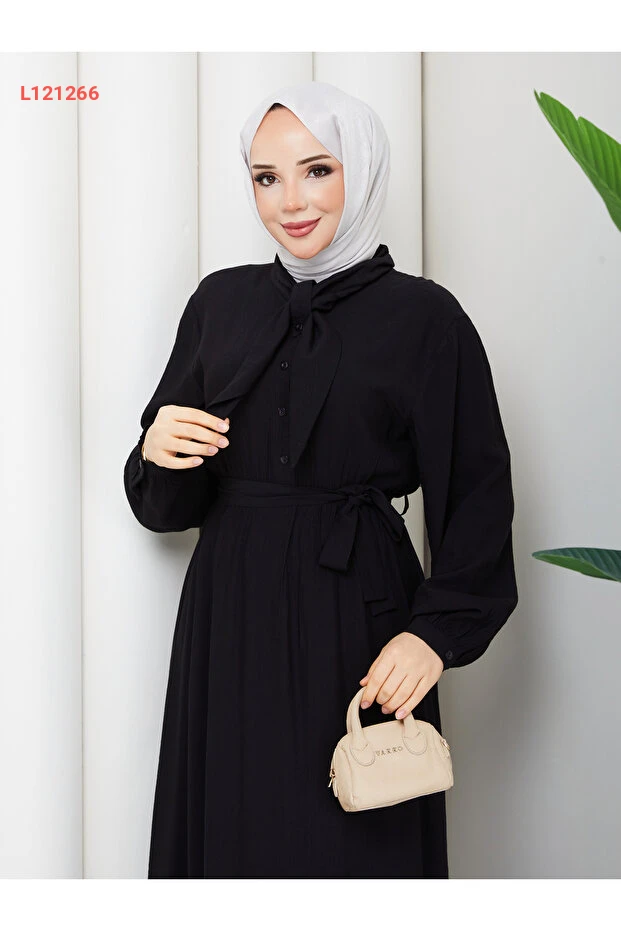 فستان حجاب مزين بأزرار وياقة فولو من قماش الفراولة RC6038