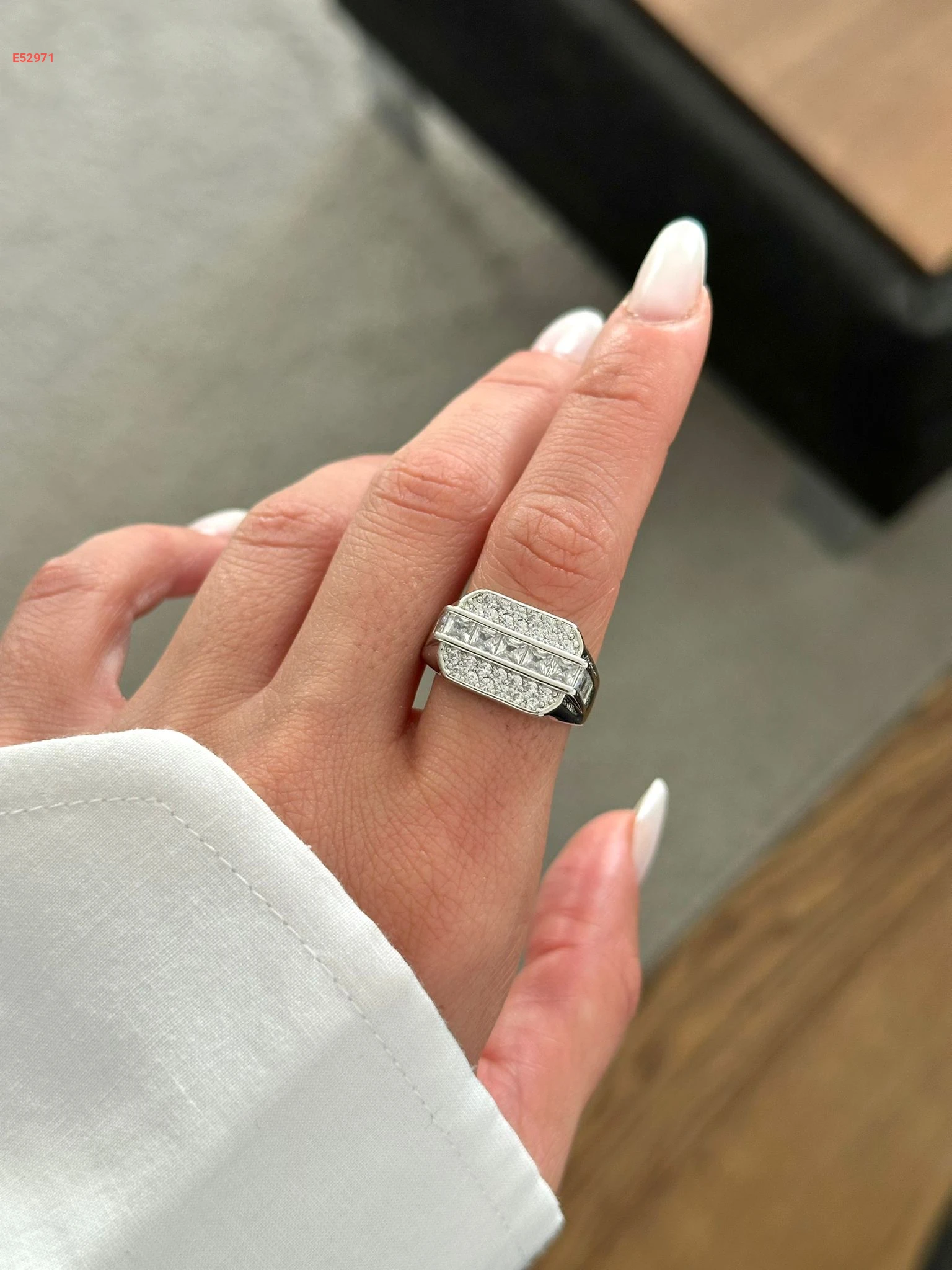 خاتم راديوم ستانلس ستيل مرصع بالألماس باللون الفضي