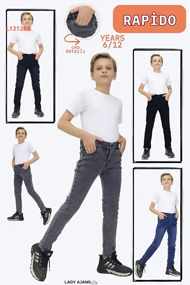 اكتشف الجمال والراحة مع بنطال RAPİDO LİFE للأطفال! يتميز بتصميمه العصري وخصره العالي، مما يوفر لأطفالك حرية الحركة والحفاظ على أناقتهم أينما ذهبوا. صنع من قماش جينز عالي الجودة، هذا البنطال يجمع بين الراحة والأناقة ليكون الخيار المثالي لكل مغامراتهم اليومية!