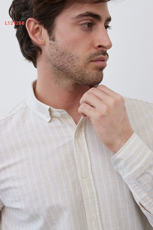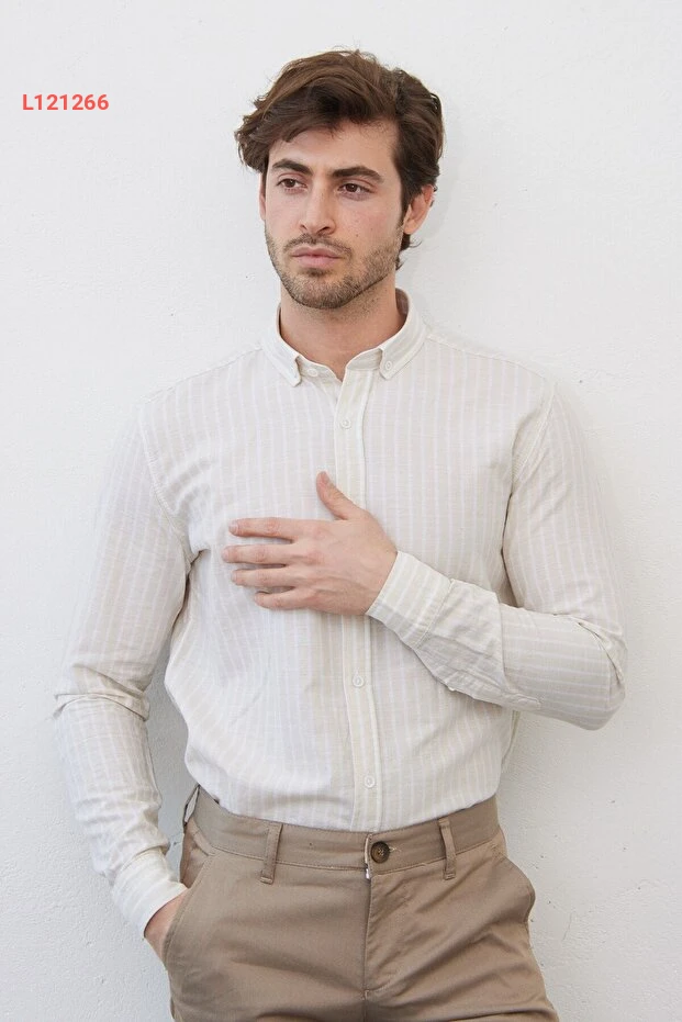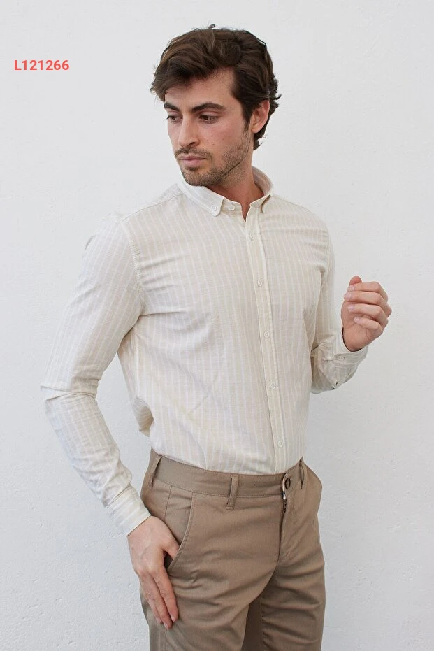 قميص رجال رافانيلي ذو ياقة طويلة وأزرار بتصميم عصري وقصّة ضيّقة مخططة من القطن