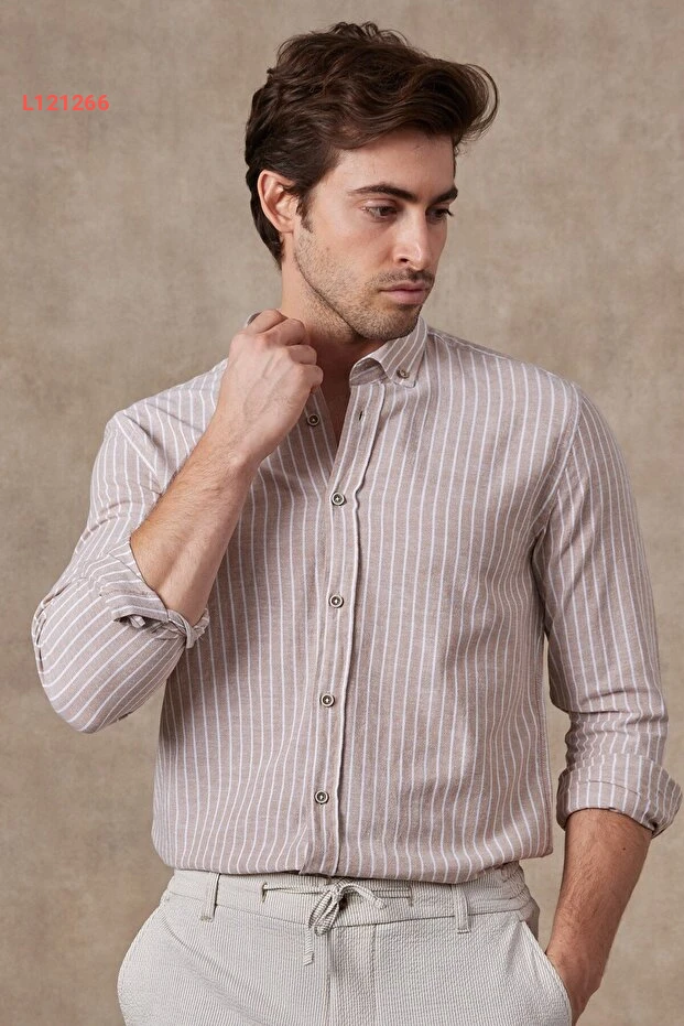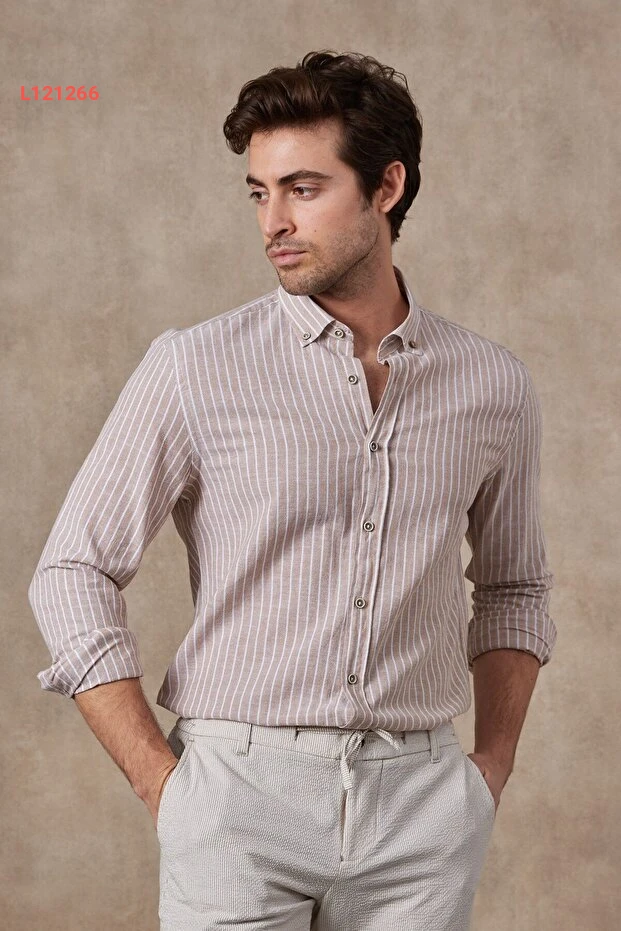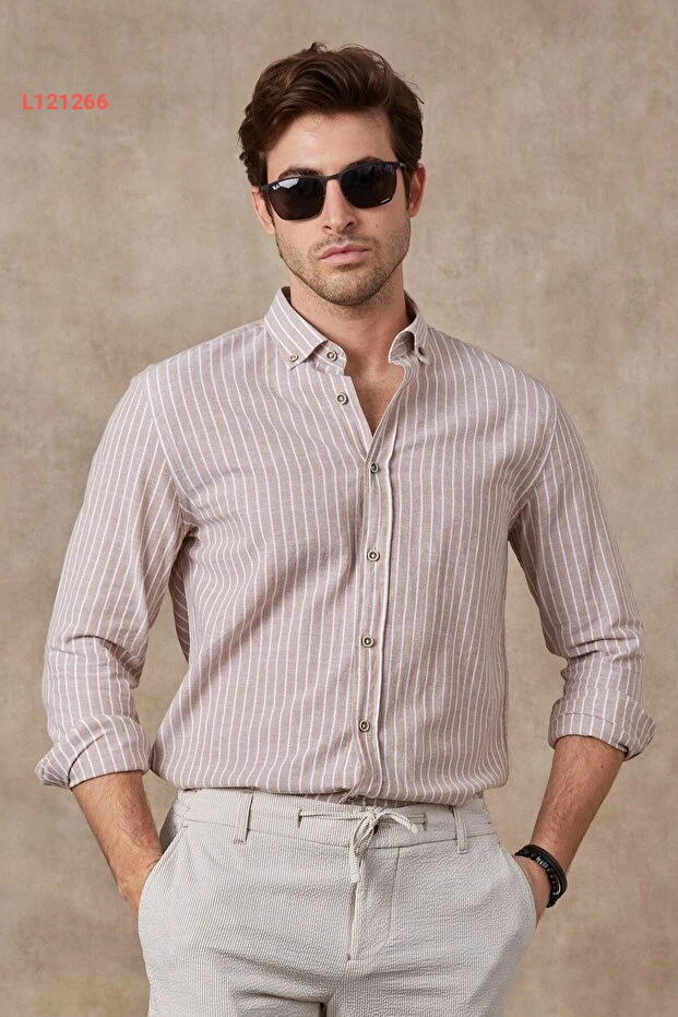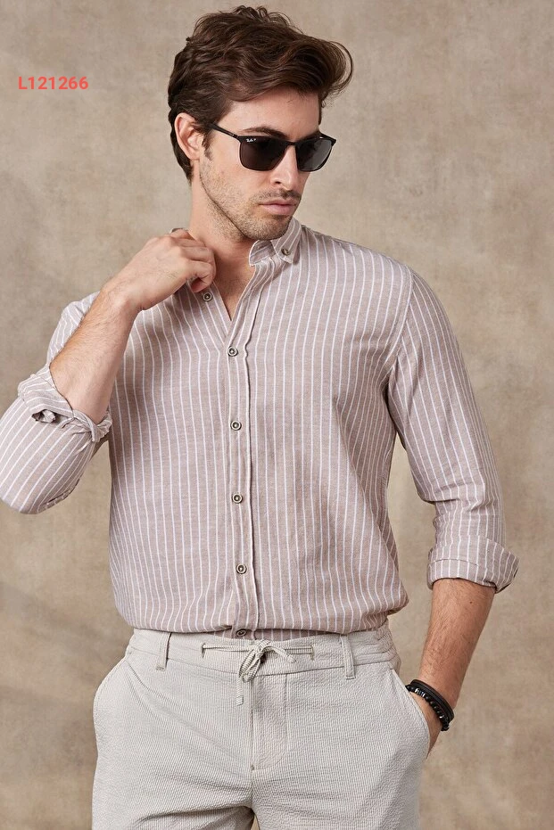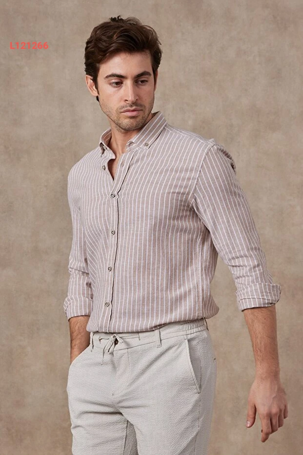 قميص رافانيلي للأ мужчин بخطوط قطنية كتان بقصة عصرية تناسب الجسم