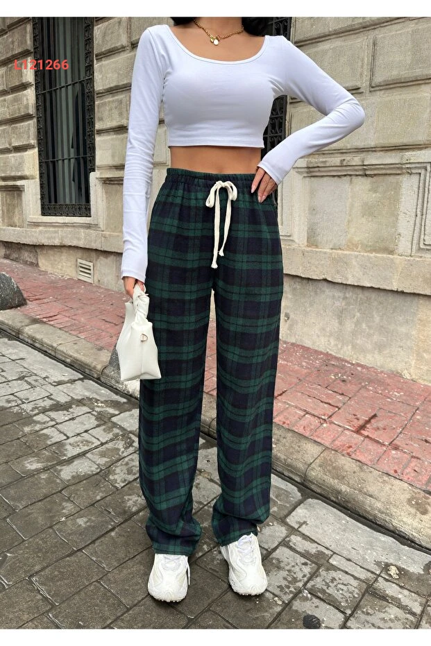 بيجامة هاراجوكو بتصميم مربع باللونين الأخضر الداكن والأزرق - يناسب جميع الأجناس