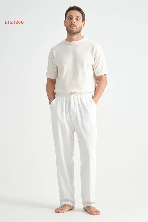 سروال راحة واسع من قماش الكتان للرجال - لاين ريدلاين الفاخر للموسم الجديد