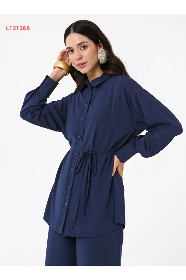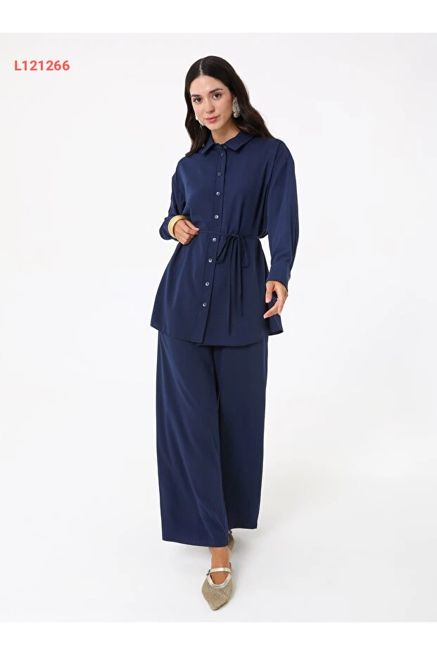اكتشفي الأناقة العصرية مع طقم Refka المكون من قميص وسروال ذو حزام! بلون النيلي الجذاب، يتميز هذا الطقم بتصميمه الأنيق الذي يضفي لمسة من الفخامة على إطلالتك. تركيبة مثالية من الراحة والأناقة، تجعل هذا الطقم خياراً مثالياً لأي مناسبة.