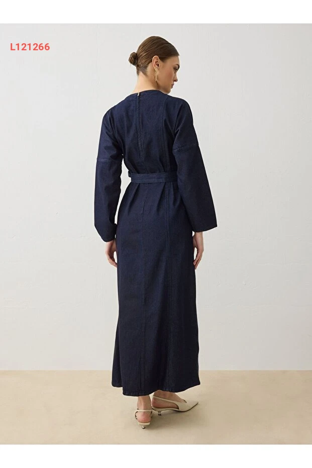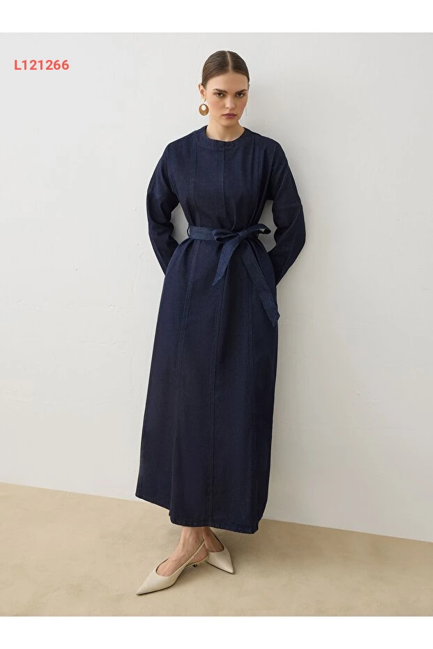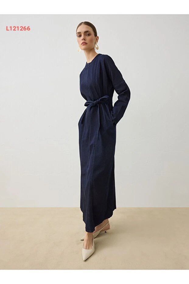 فستان تسليم دينيم بتفاصيل خياطة - كحلي فاتح