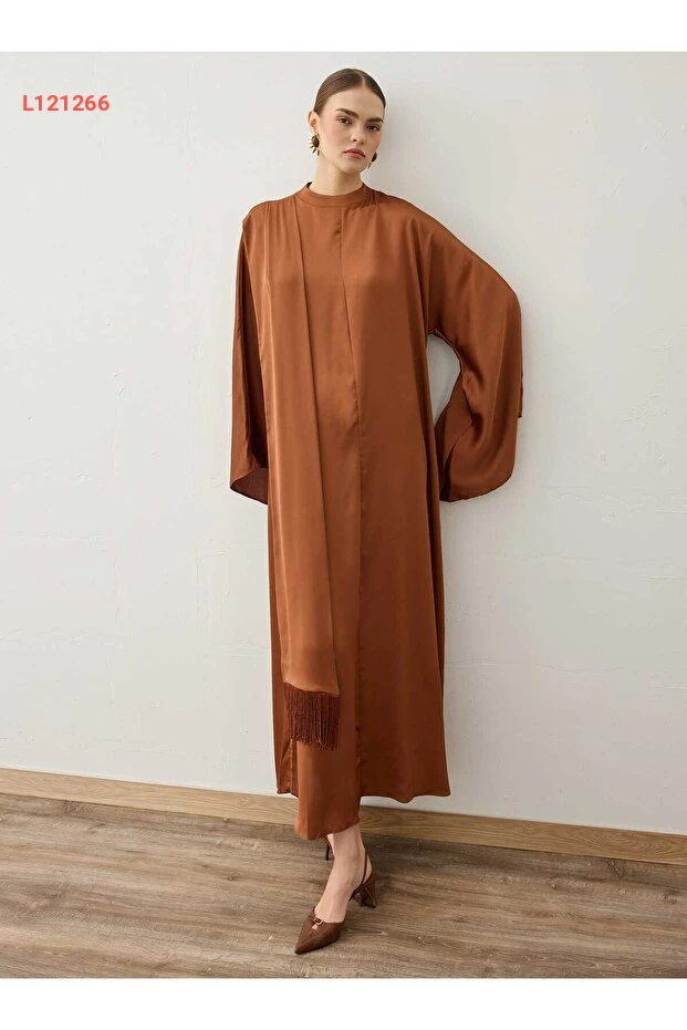 أضيفي لمسة من الأناقة إلى خزانة ملابسك مع فستان الحجاب المصنوع من قماش الساتان الفاخر، المزود بخرزات أنيقة. بلون الكاميل الدافئ، يتميز بتصميمه العصري الذي يوفر لكِ الراحة والتميّز في كل مناسبة، مما يجعله الخيار المثالي للتألق بأيامك.