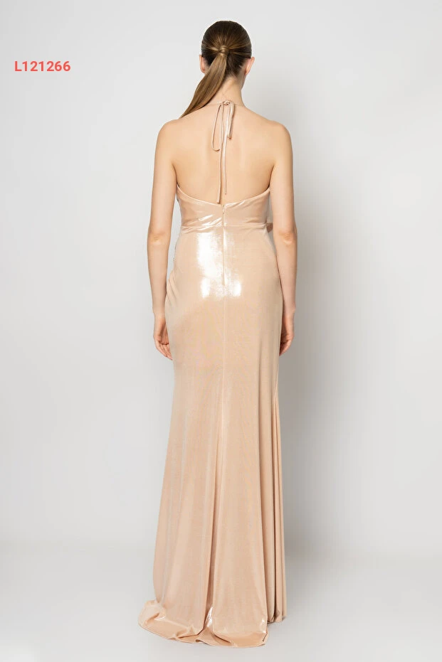 RENGIN Boyundan ip askılı anvelop yaka parlak örme elbise